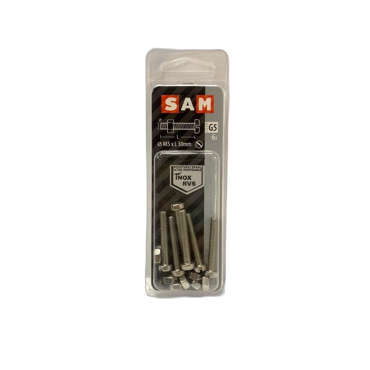 SAM/MACK Gewindeschraube Zylinderkopf + Mutter M5 x 30mm 6 Stéck