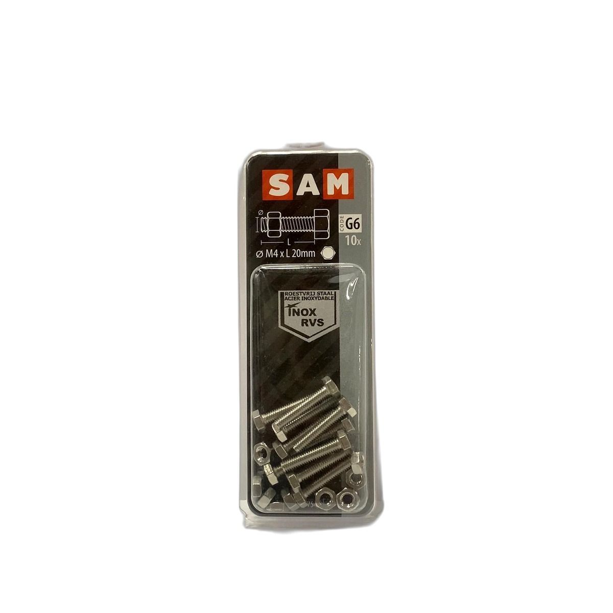 SAM/MACK Sechskantschraube Vollgewinde + Mutter M4x20mm mit Muttern 10 Stéck