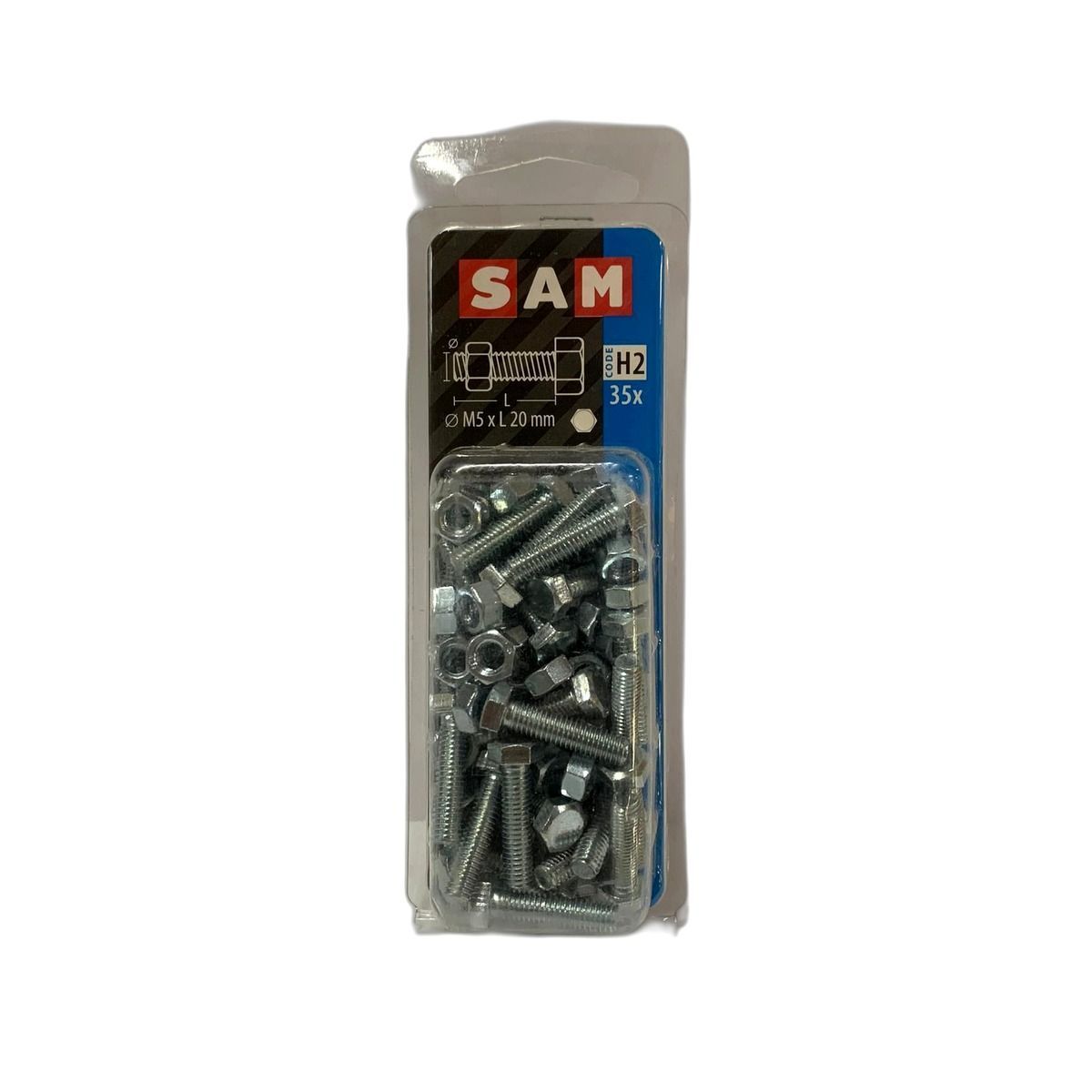 SAM/MACK Sechskantschraube Vollgewinde + Mutter M5 x L 20 mm 35 Stéck
