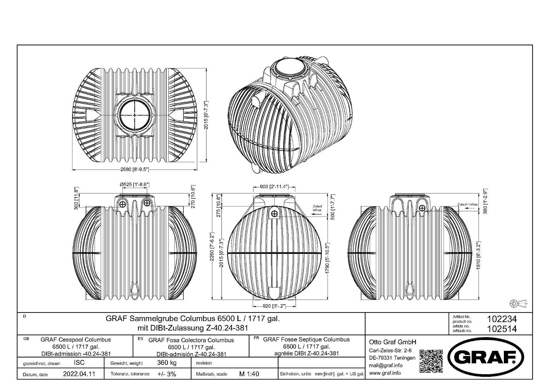 Sammelgrube Columbus 6500 Liter mit DIBT Zulassung, Sammelgrube