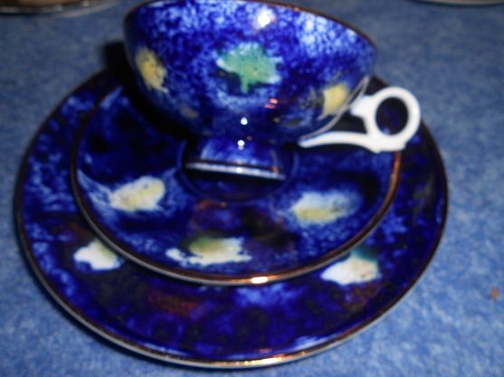 Sammeltasse / Kaffeegedeck 3 teilig Lichte echt kobalt