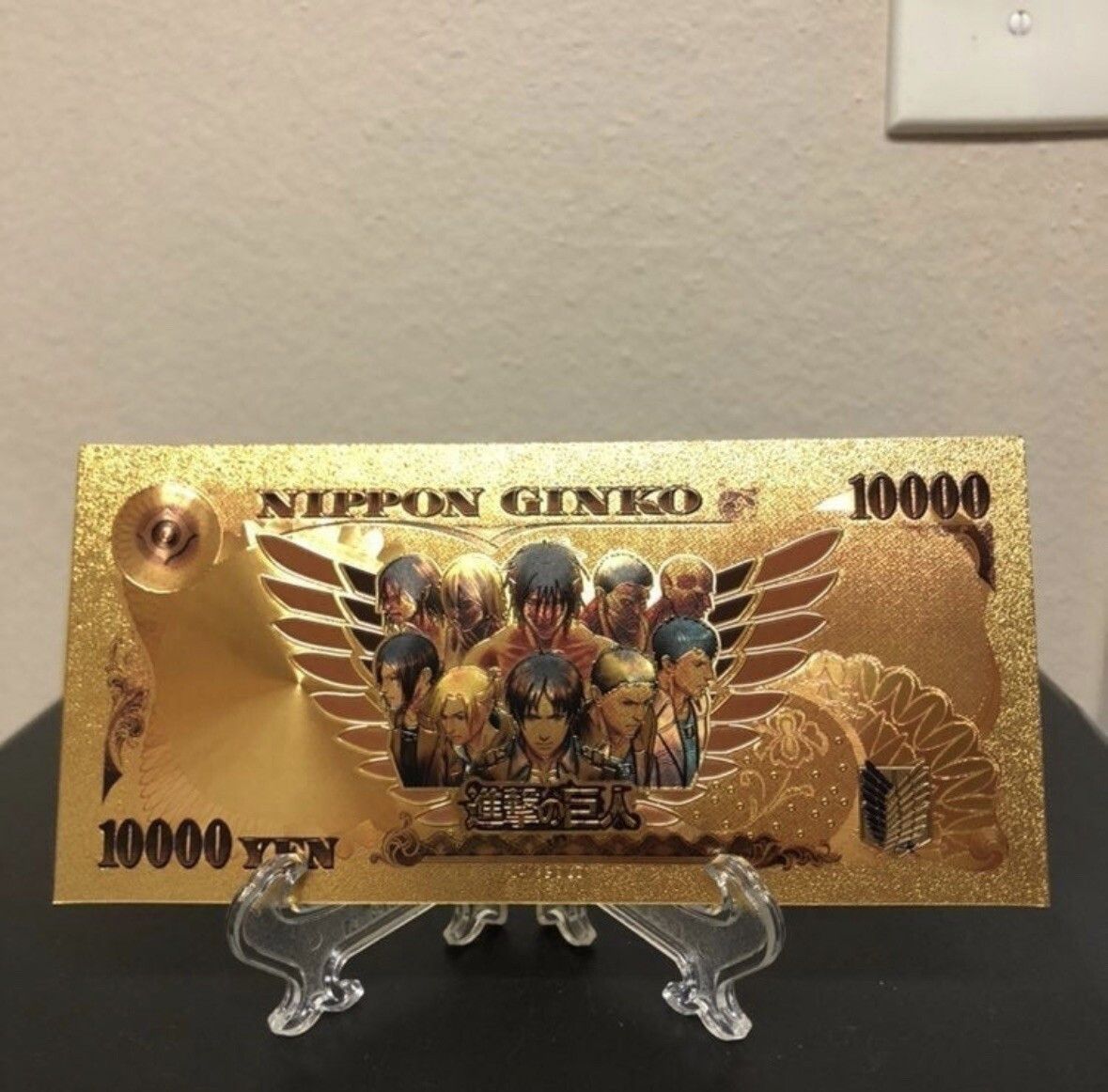 Eren Jaeger Angriff auf Titan Manga Anime Banknote - vergoldet Folie - sehr selten Technische Information zum Artikel Material: Goldfolie Größe: original Größe Erhaltung: Neu Verpackung: Folie Das ideale Geschenk oder natürlich auch zum selber sammeln Natürlich handelt es sich nicht um echtes Geld... Mehr