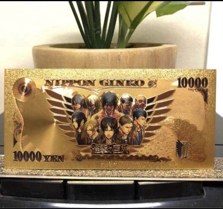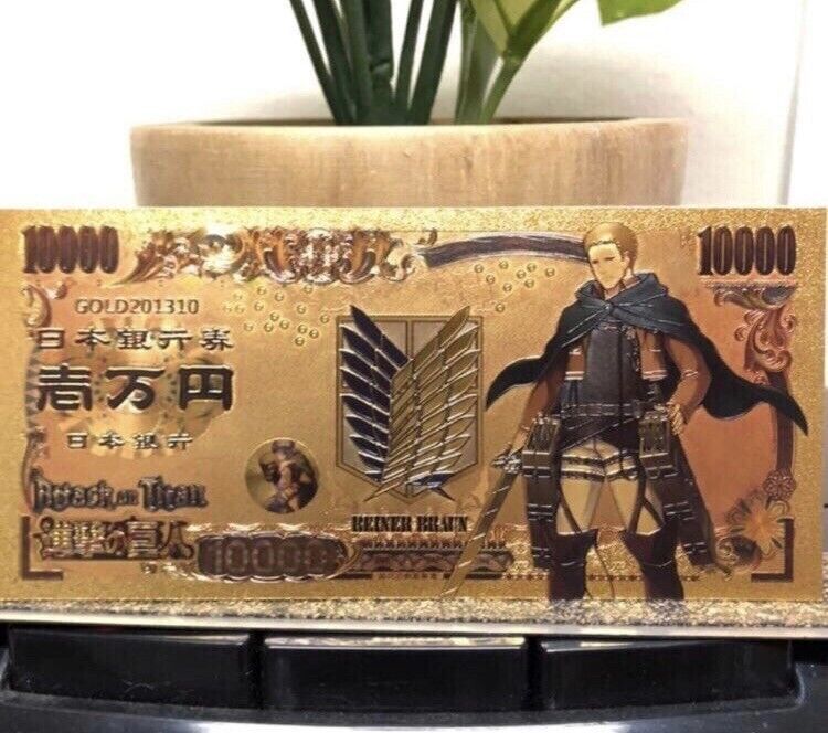 Reiner Braun Angriff auf Titan Manga Anime Banknote - vergoldet Folie - sehr selten Technische Information zum Artikel Material: Goldfolie Größe: original Größe Erhaltung: Neu Verpackung: Folie Das ideale Geschenk oder natürlich auch zum selber sammeln Natürlich handelt es sich nicht um echtes Geld... Mehr