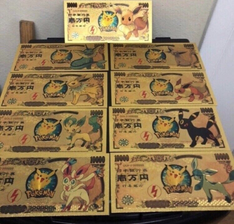 9er Sammler Set Goldfolie Banknoten Pokemon wie abgebildet vergoldet Folie Technische Information zum Artikel Material: Goldfolie Größe: original Größe Erhaltung: Wie Neu Verpackung: Plastik Folie Das ideale Geschenk oder natürlich auch zum selber sammeln Natürlich handelt es sich nicht um echtes Ge... Mehr