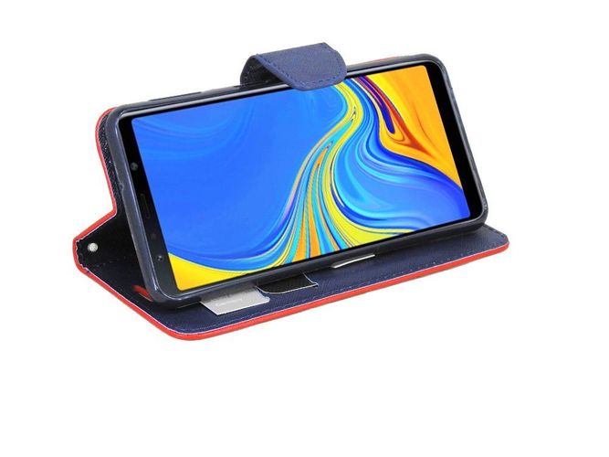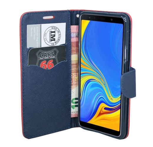 Samsung Galaxy A7 2018 Tasche Rot-Blau Handyhülle Schutzhülle Flip Case Cover Hülle