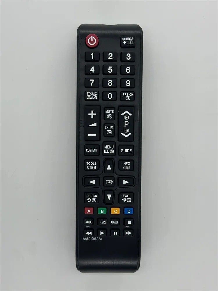Universal Samsung TV remote control, compatible with AA59-00602A, AA59-00666A, AA59-00741A, and AA59-00496A models. Works with LCD, LED, and Smart TVs. Easy setup and replacement for lost or broken remotes.