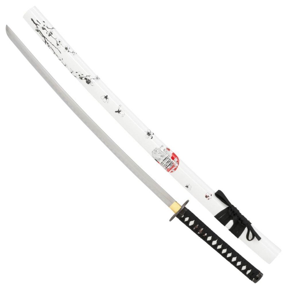 Haller Samurai Schwert Katana weiße Blumen auf weißer Scheide (Gr. 97cm)