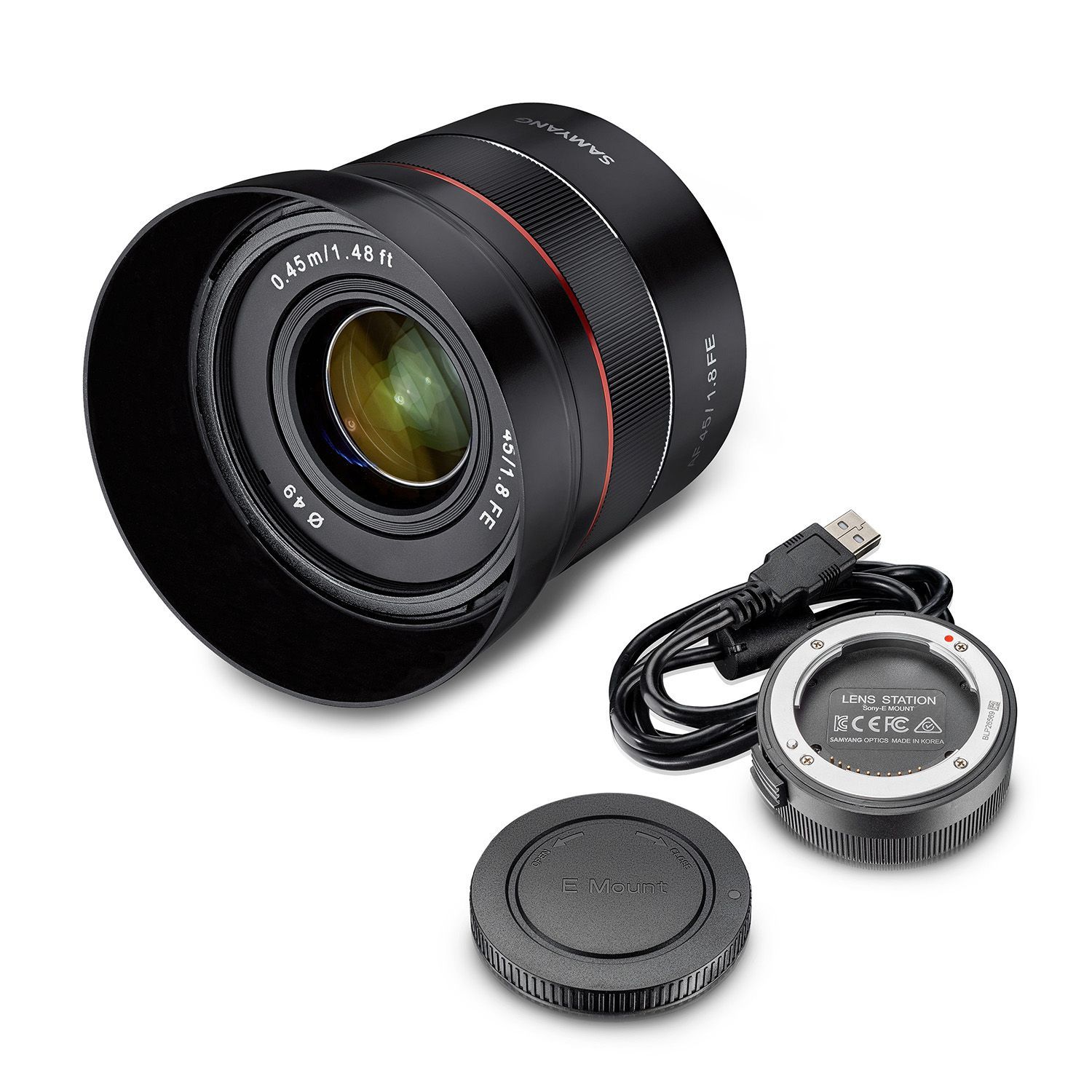 Samyang Samyang Objektiv AF 45mm F1,8 FE & Lens Station Sony E-Mount Vollformat & APS-C