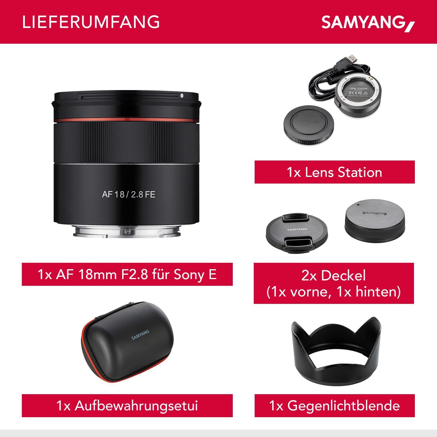 Samyang Samyang Set Objektiv AF 18mm F2.8 FE & Lens Station Vollformat APSC Sony E-Mount