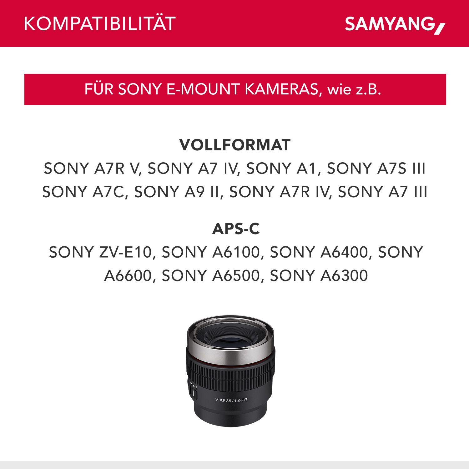 Samyang Samyang V-AF 35mm T1,9 FE Video-Objektiv für Sony E Kameraobjektiv Autofokus 8K