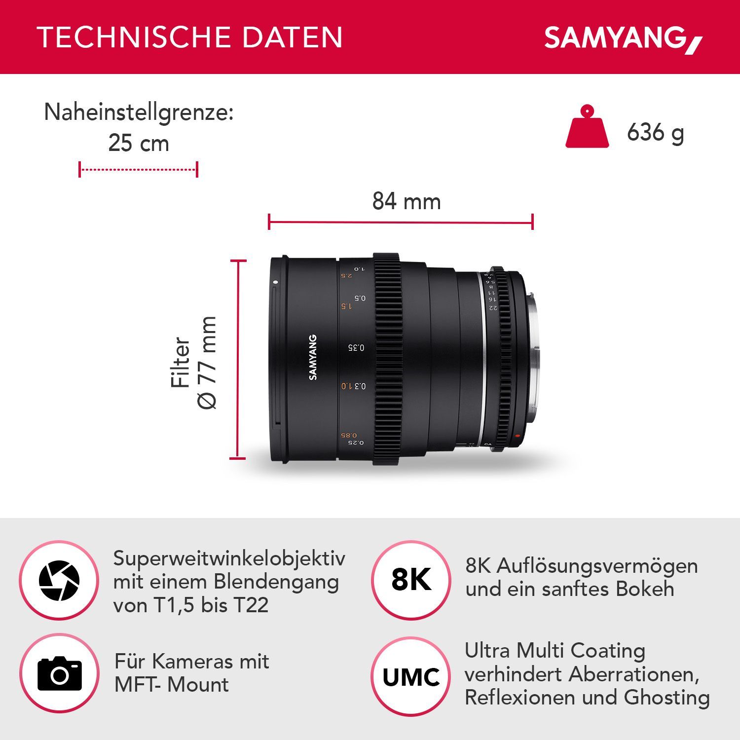 Samyang Samyang Weitwinkel Cine- und Video Objektiv MF 24mm T1,5 VDSLR MK2 MFT