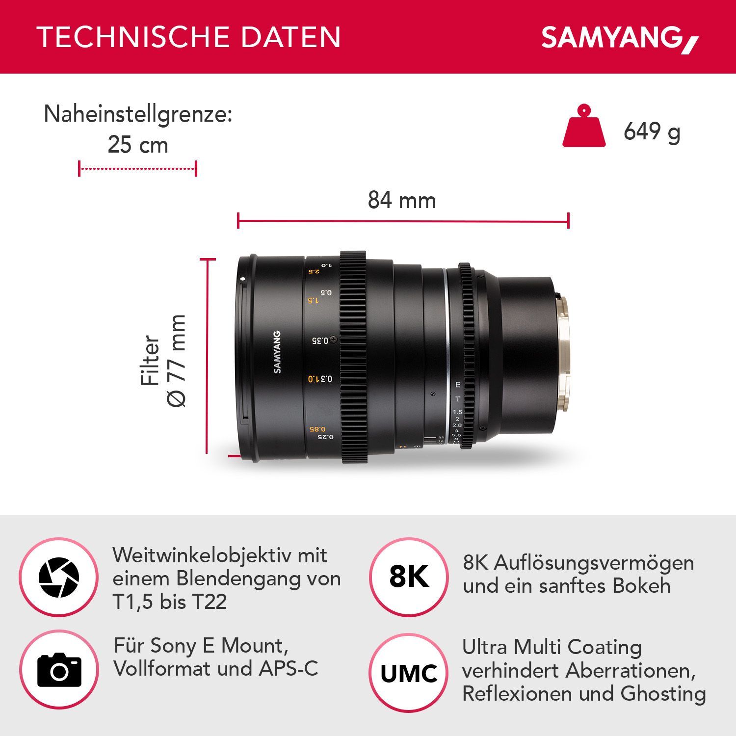 Samyang Samyang Weitwinkel Cine- und Video Objektiv MF 24mm T1,5 VDSLR MK2 Sony E
