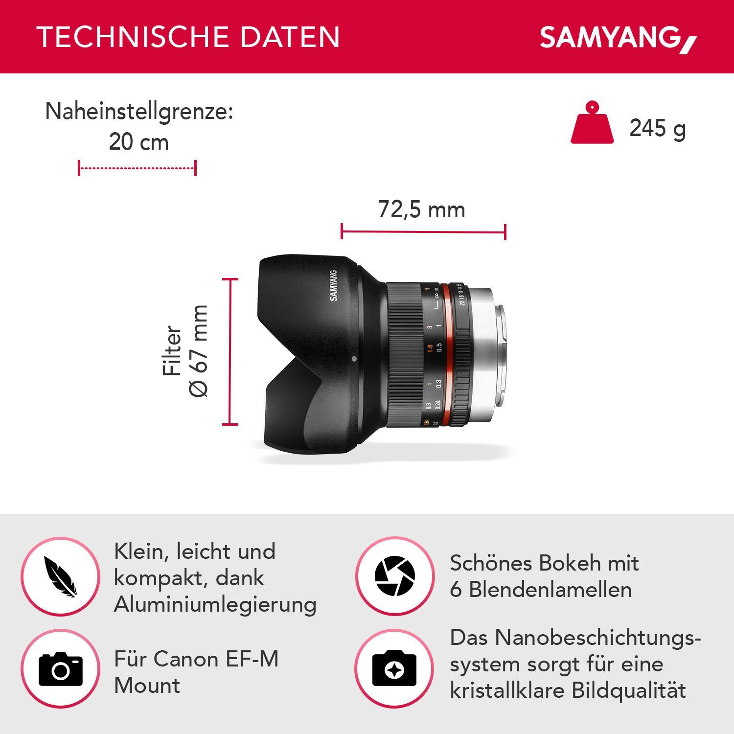 Samyang Samyang Weitwinkel Objektiv 12mm F2.0 APS-C Canon M APS-C MF EOS M6 Mark II usw