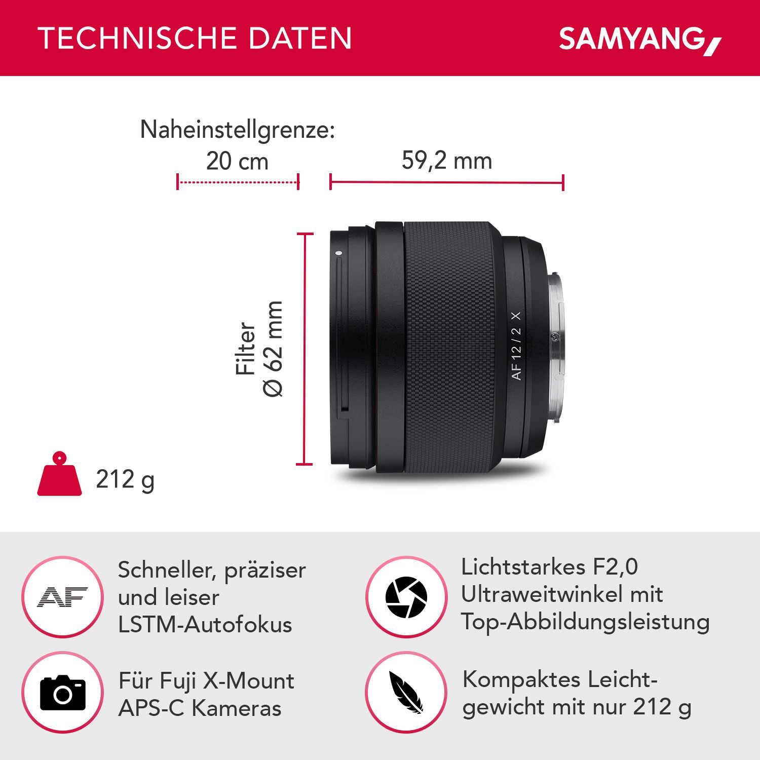 Samyang Samyang Weitwinkel Objektiv AF 12mm F2,0 Fuji X Festbrennweite X-Mount APS-C
