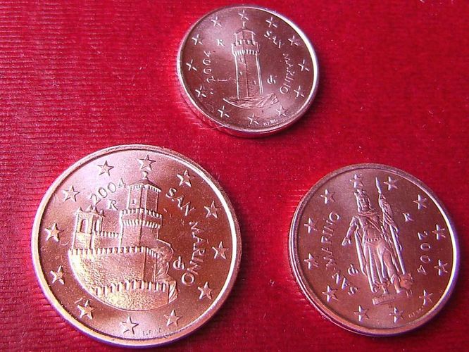 San Marino 1 cent , 2 cent und 5 cent 2004 bankfrisch aus der Rolle Lesen