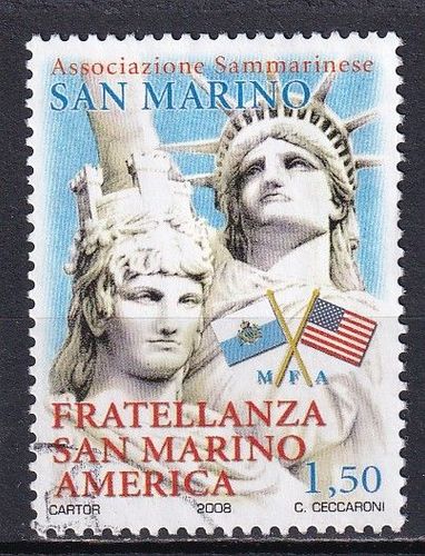 San Marino, 2008, Freundschaft mit Amerika, 1 Briefm., gest