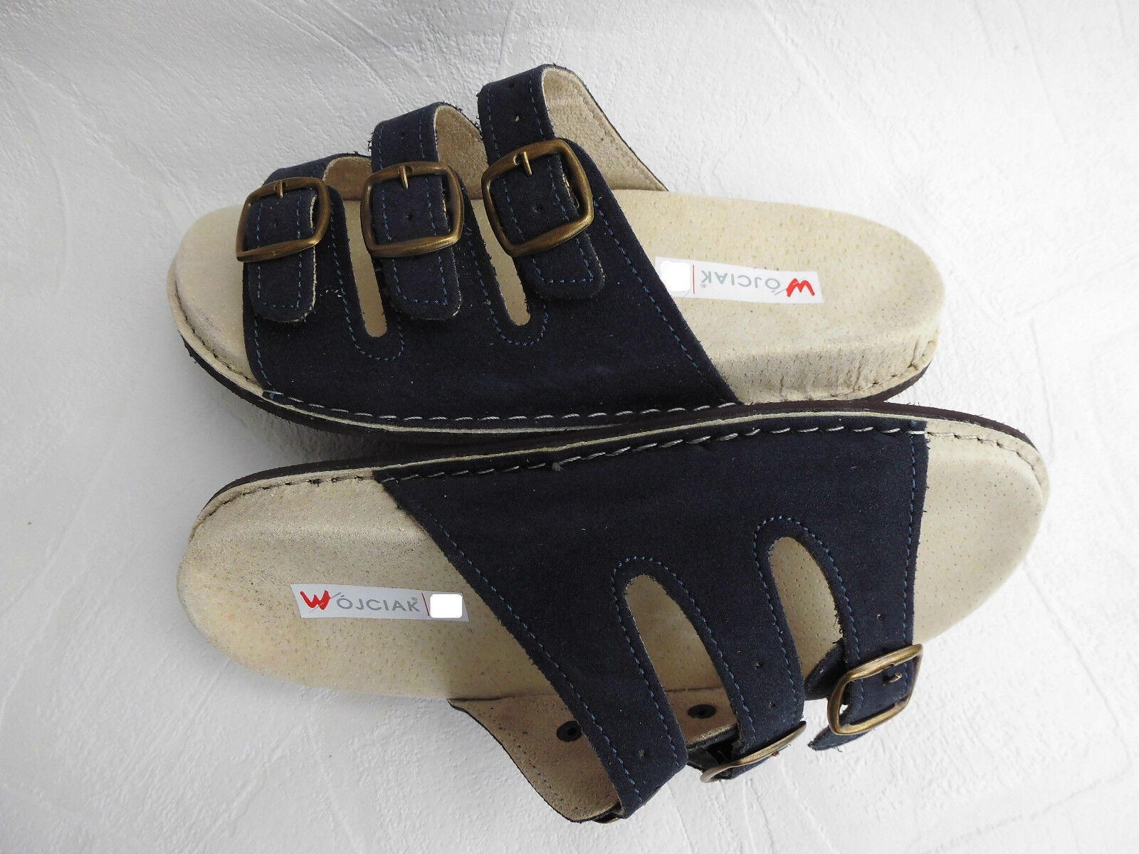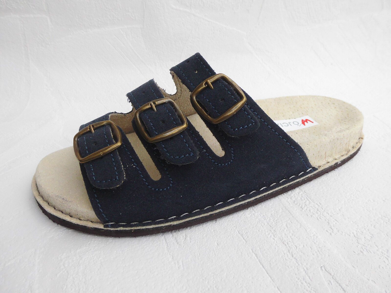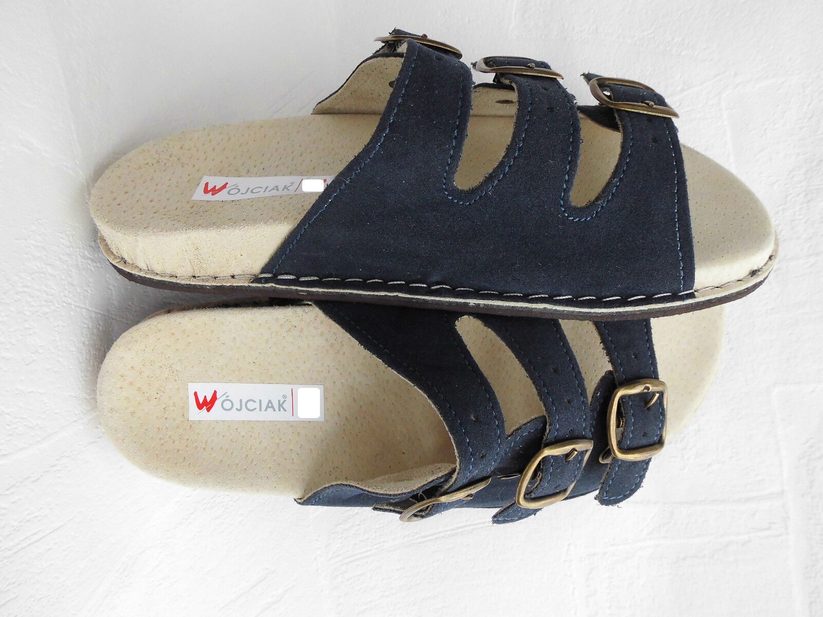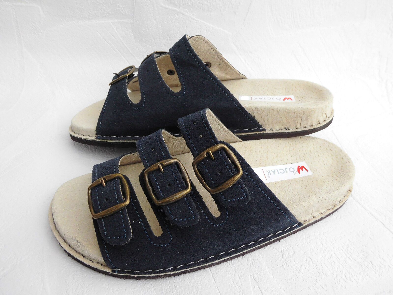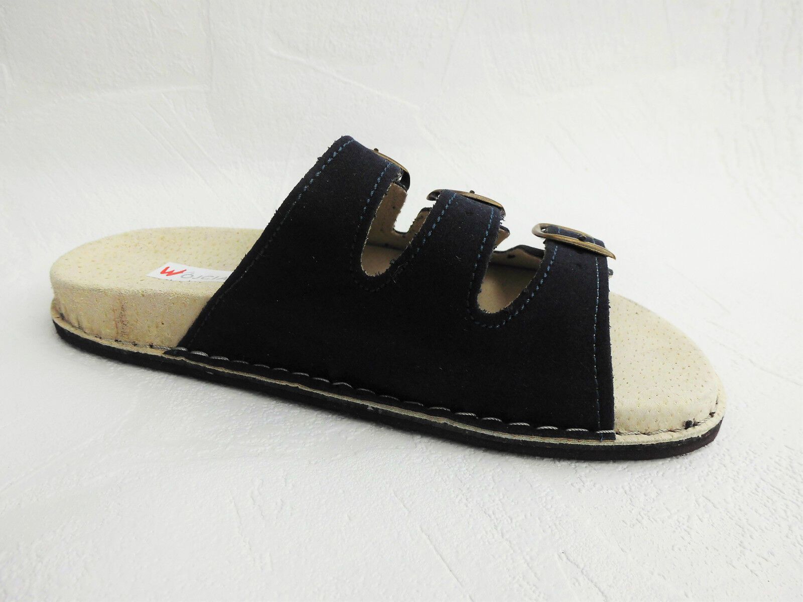 Sehr schöne und bequeme Sandalen - Pantolette - Hausschuhe - Badeschuhe Gr.38 **** Dunkel BLAU**** Die Hausschuhe bestehen außen und innen aus Wildleder Die Sohle besteht aus Gummi (rutschfest) Decksole Leder mit dem Fussbett 3 verstellbare Schnallen Sehr leicht und bequem Neu, keine billig Ware, st