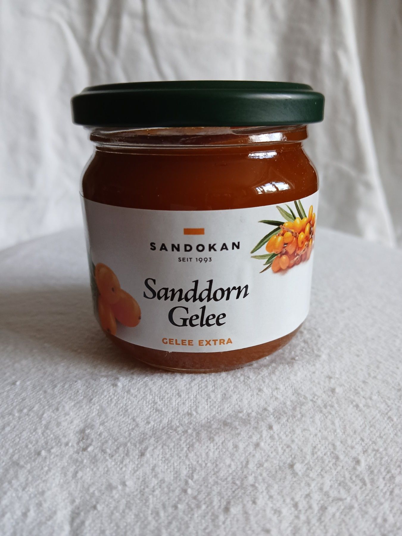 Sanddorn Gelee - extra 225 g Mit diesem Sanddorn extra startet man mit einem fruchtig süßen Genuss in den neuen Tag. Inhalt: · 225 gr. im Schraubglas Geschmack: · Sanddorn · Fruchtig · Aromatisch · Süß Passt am besten zu: · Frisches Brot oder Brötchen &middo