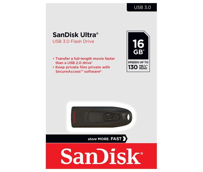 SanDisk SanDisk USB 3.0 Stick 16GB Ultra Typ-A (R) 130MB/s SecureAccess Retail-Blister