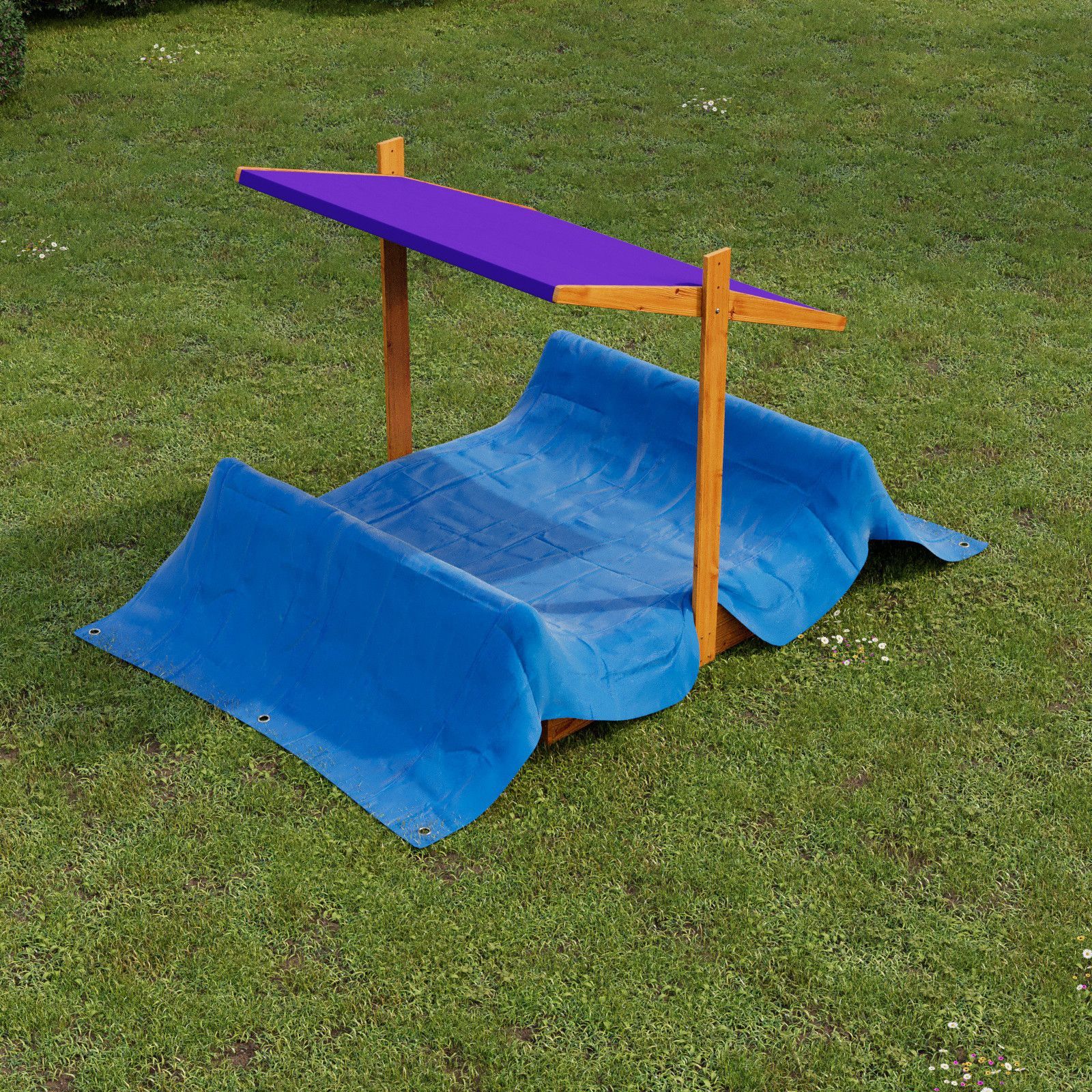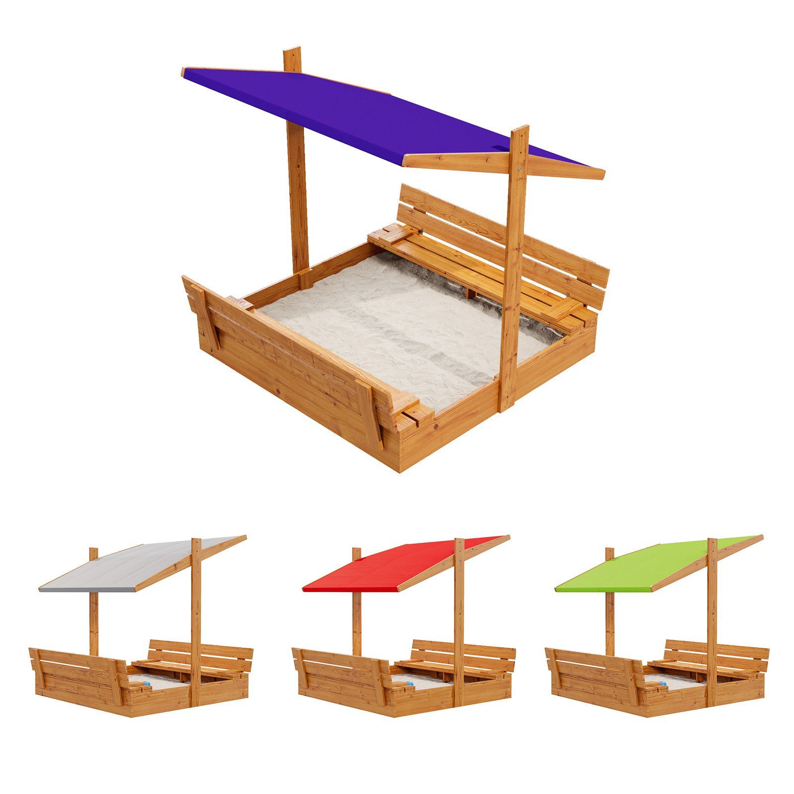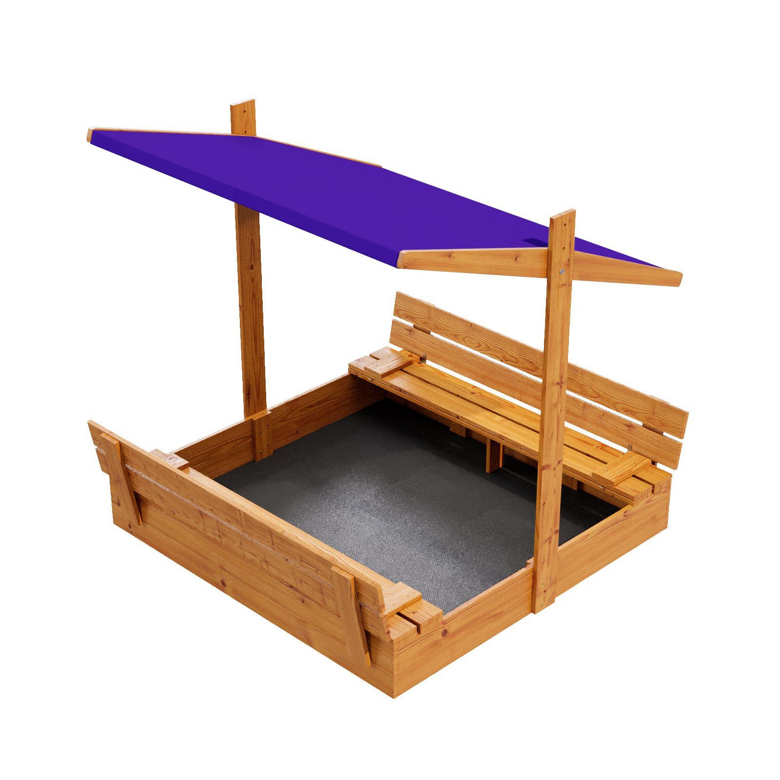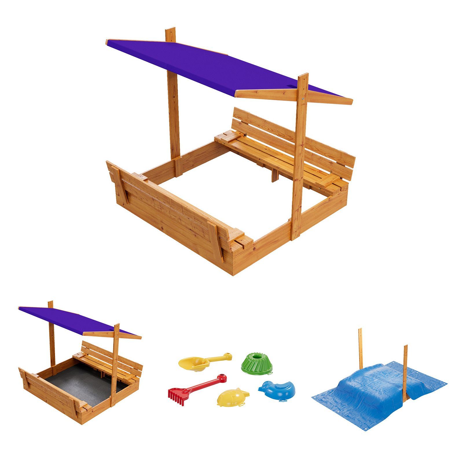 QLS Sandkasten aus Holz mit Sitzbank Dach Abdeckung Imprägniert Sandbox Dunkelblau 10782