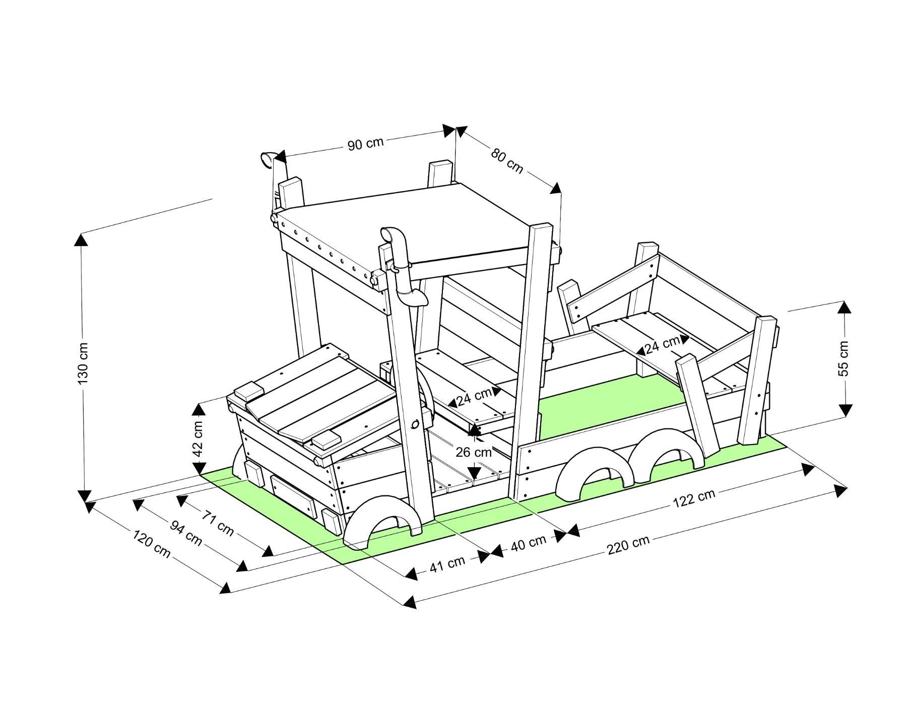 Sandkasten AUTO - LKW - Sandkiste - Spielhaus - Buddelbox