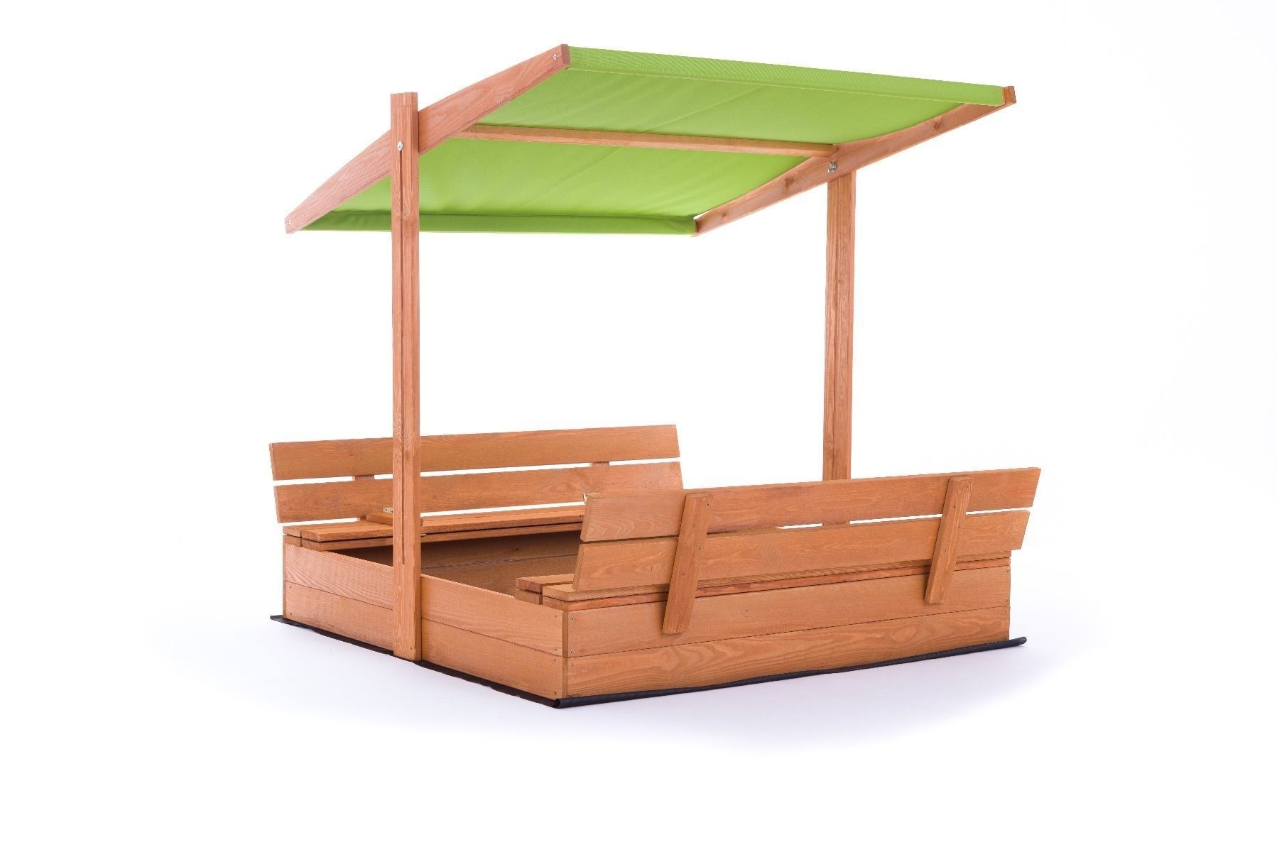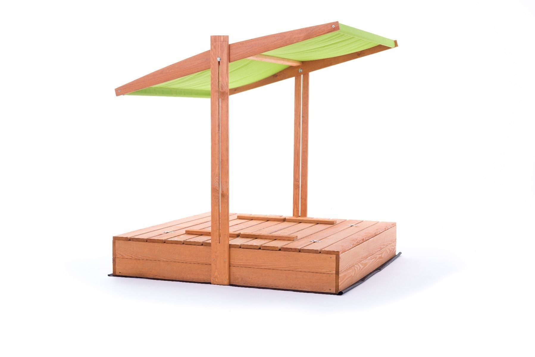 Sandkasten - Holz - mit Dach und Bänken - 140x140 cm - grün