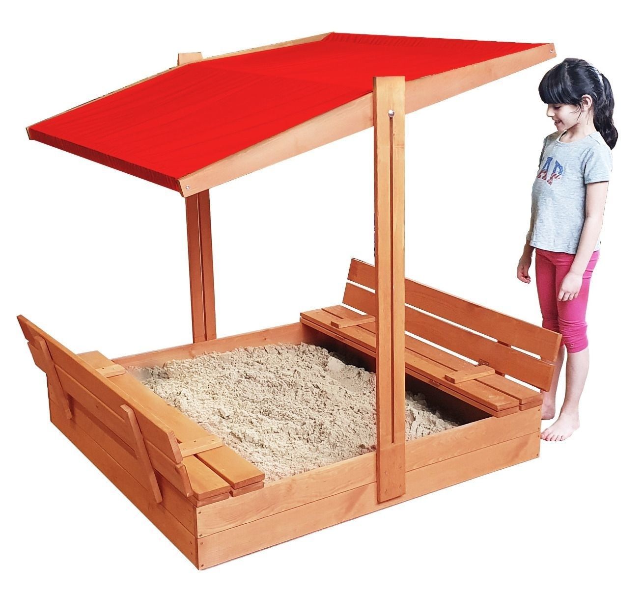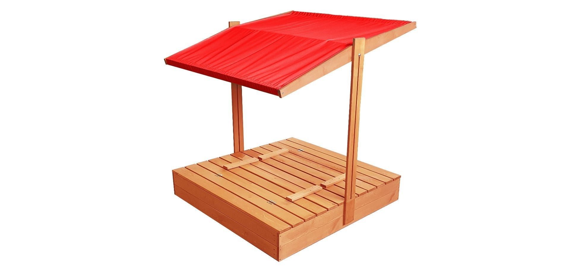 Sandkasten - Holz - mit Dach und Bänken - 140x140 cm - rot