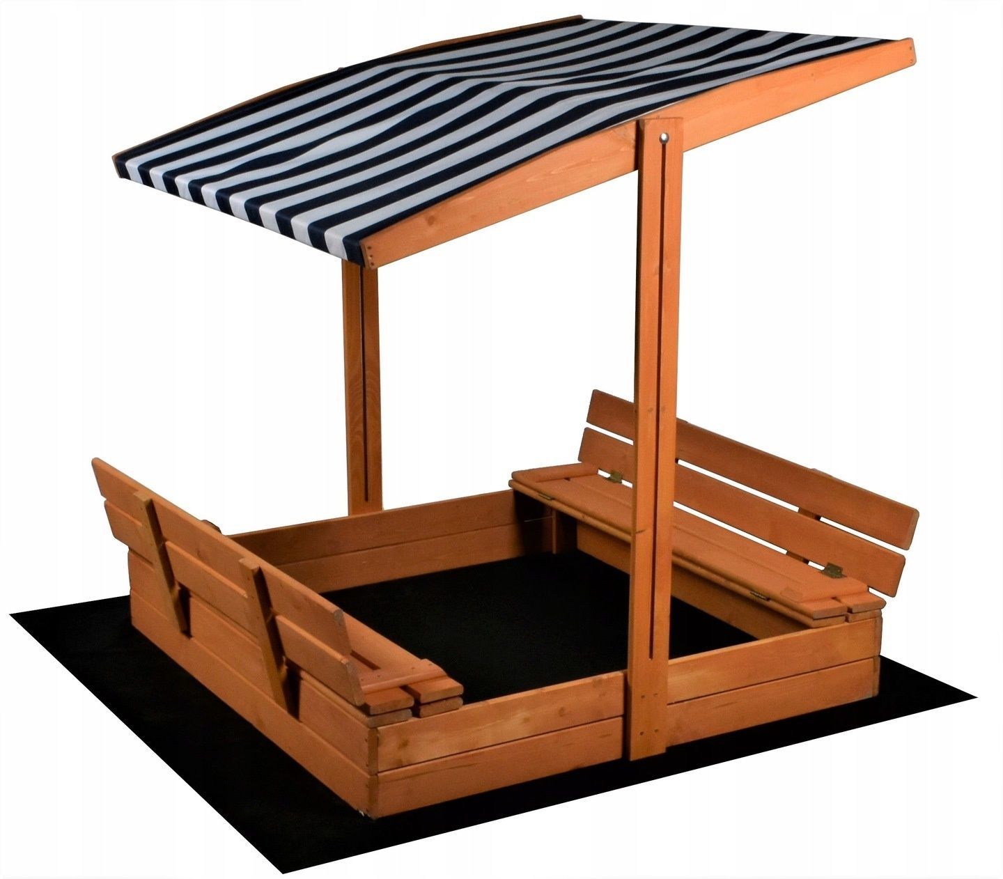Sandkasten mit Dach – Spielzeug – und Bodenplane – 120 x 120 x 120 cm