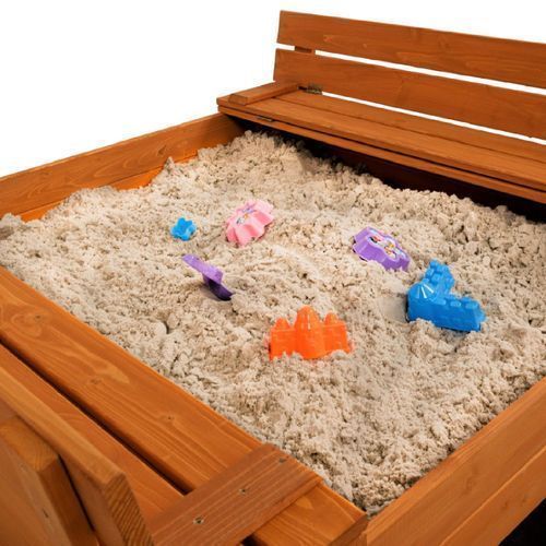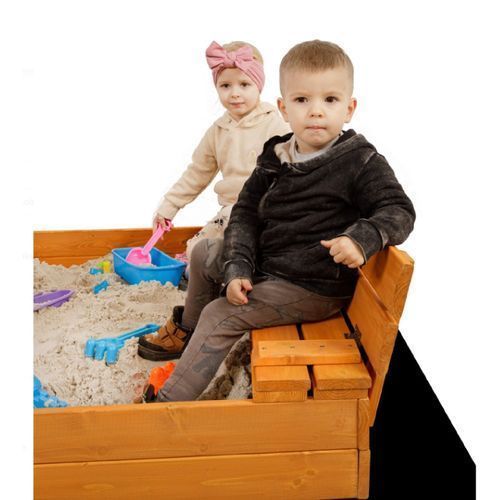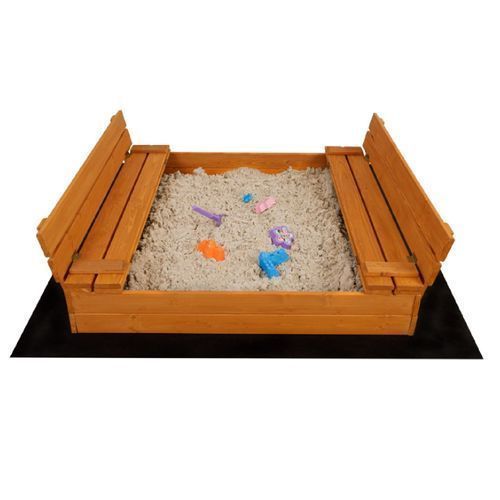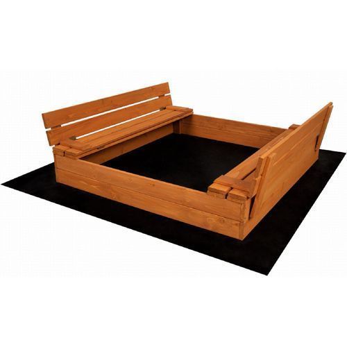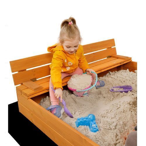 QLS Sandkasten Sandbox mit Deckel Teak Holz Sandkiste Sitzbänke Garten 120x120cm 9885
