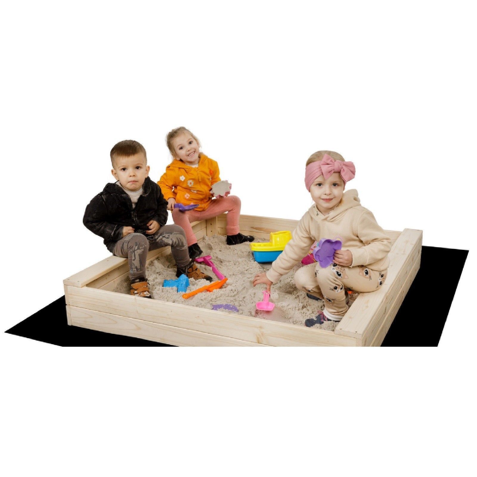 QLS Sandkasten Sandbox zum Bemalen Kiefer Holz Sandkiste Garten Spielen 120x120cm 9888