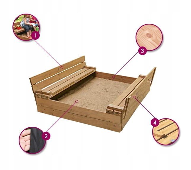 Sandkastenholz 160x160 - klappbare Abdeckung zur Sitzfläche - doppelt imprägniert