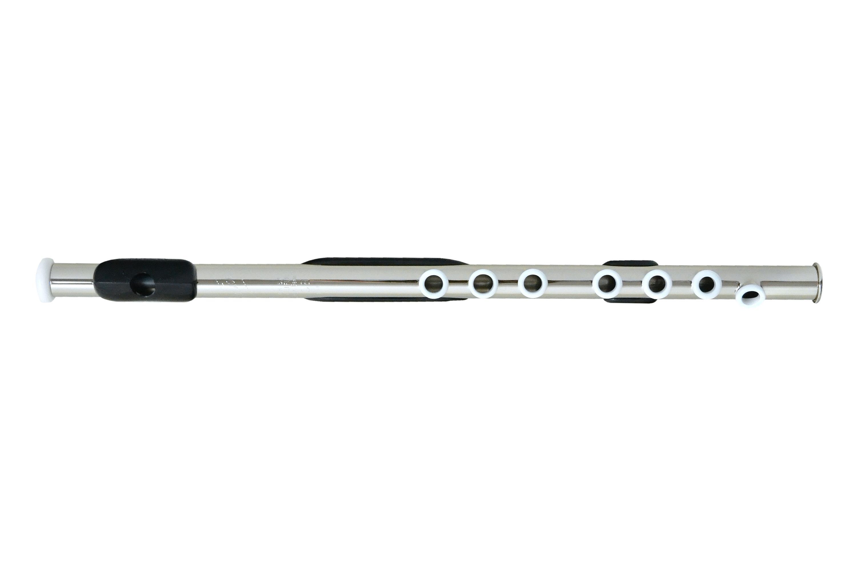 Sandner 171 Solo Sopran in CES Serie: Solo Stimmung: Ces hochglanzvernickelt gezogene Tonlöcher schwarzes Futteral Grifftabelle Vorwiegend handgearbeitet. Die Tonlöcher sind wie bei Konzertflöten aus dem eigenen Material gezogen und die weißen Kunststoffringe nachträglich eingesetzt. Elegantes Ausse