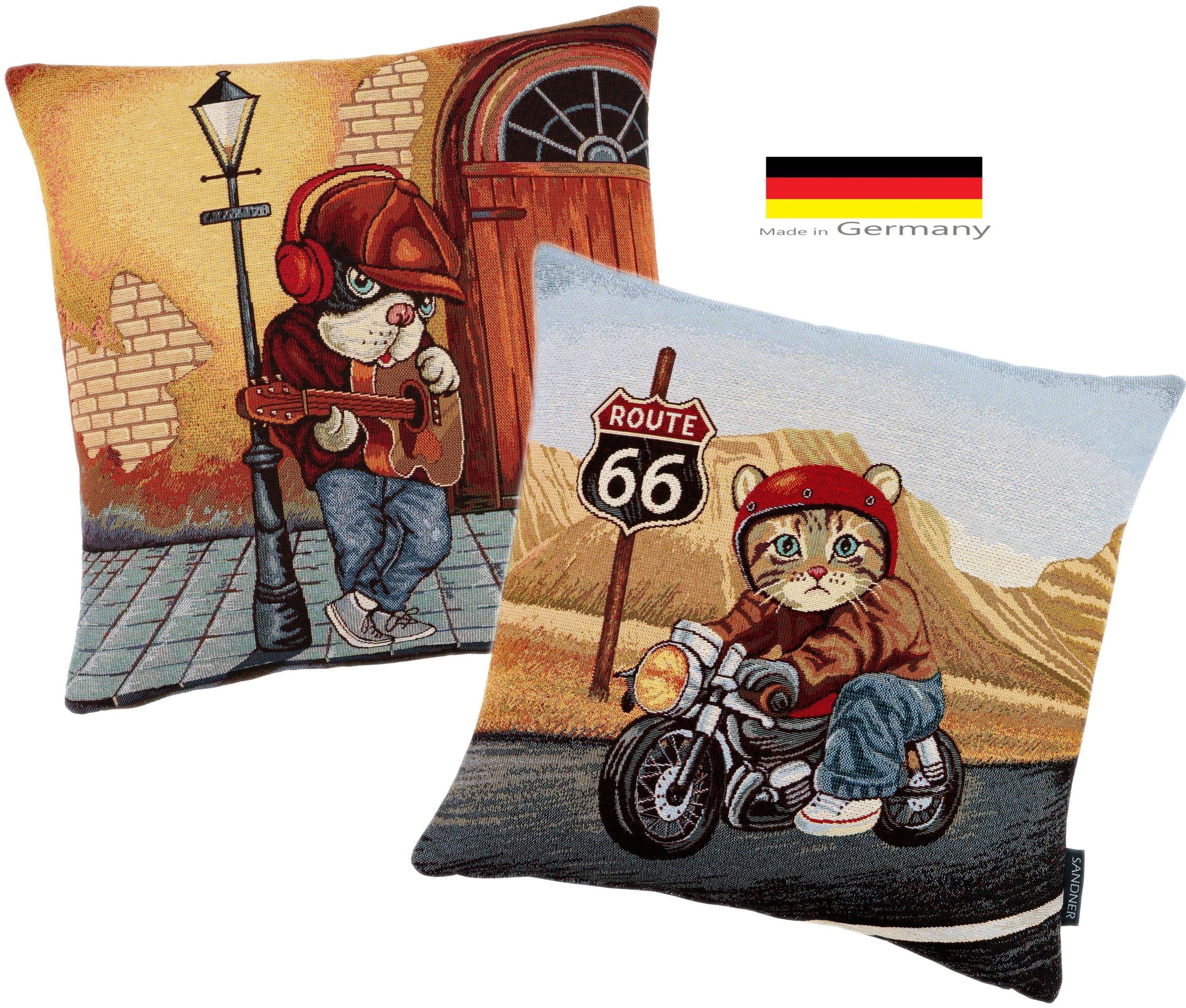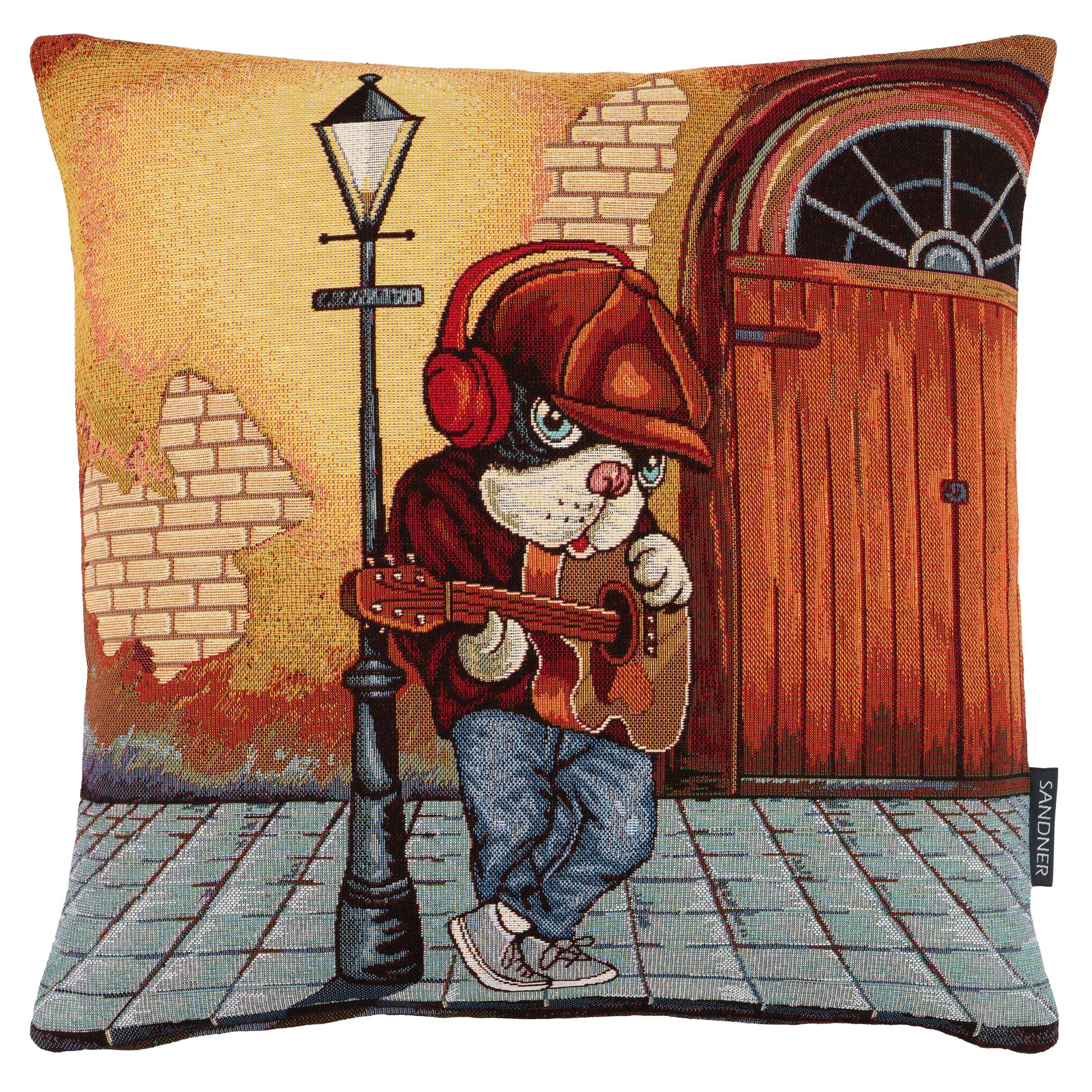 Sandner Gobelin Kissenbezug 45x45 Kissenhülle Dekokissen Hund Katze Made in Germany