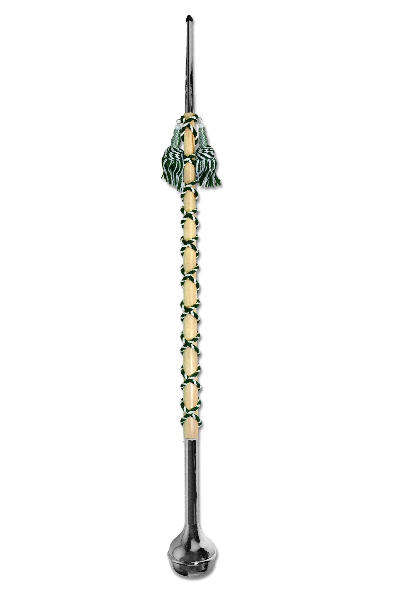 Sandner HM115 Erle 115cm Tambourstab Schnur in grün-weiß Facelift: seit Ende 2024 werden alle Sandner Tambourstäbe mit Schnurrillen ausgeliefert, wodurch ein verrutschen der Schnur verhindert wird. Länge: 115 cm Mittelstück: Erle Natur Kugel: Metall glanzverchromt Spitze: Metall glanzverchromt Schnu