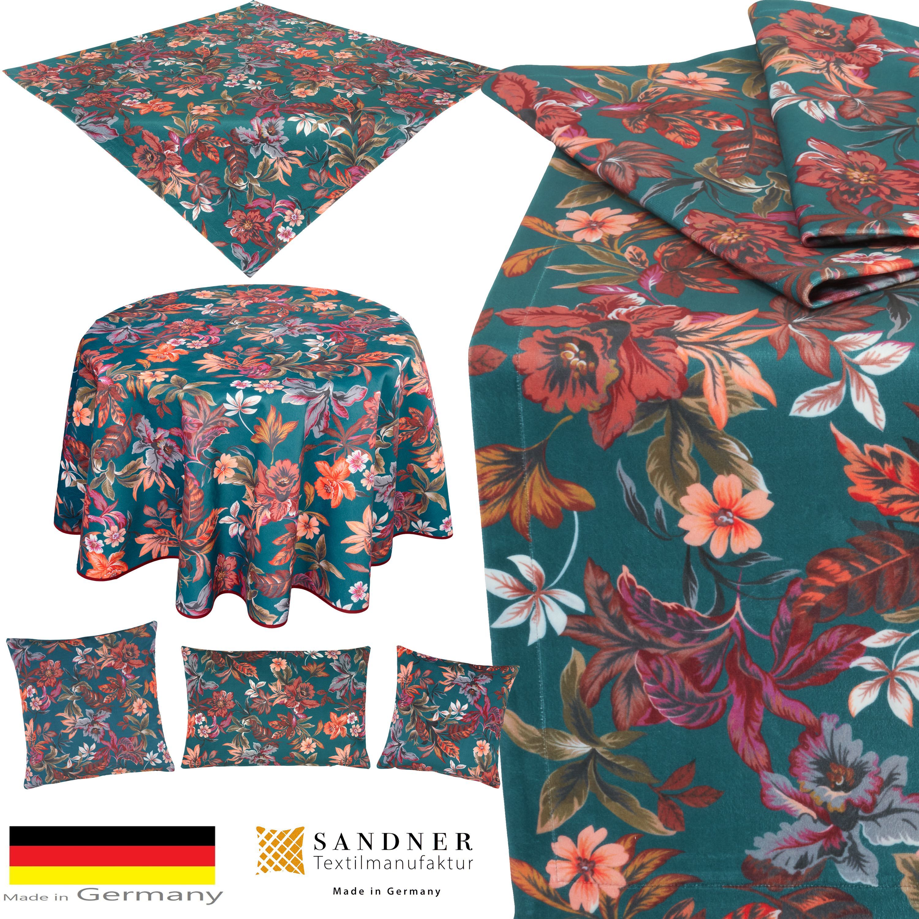 Sandner Orchideen Velours * Elegante Tischdecken, Tischläufer und Kissenbezüge als prächtige Dekoration im Sommer. Heimtextilien für Kenner und Liebhaber mit detailreichen floralen Motiven in wertiger Qualität * Made in Germany. 100% Polyester.