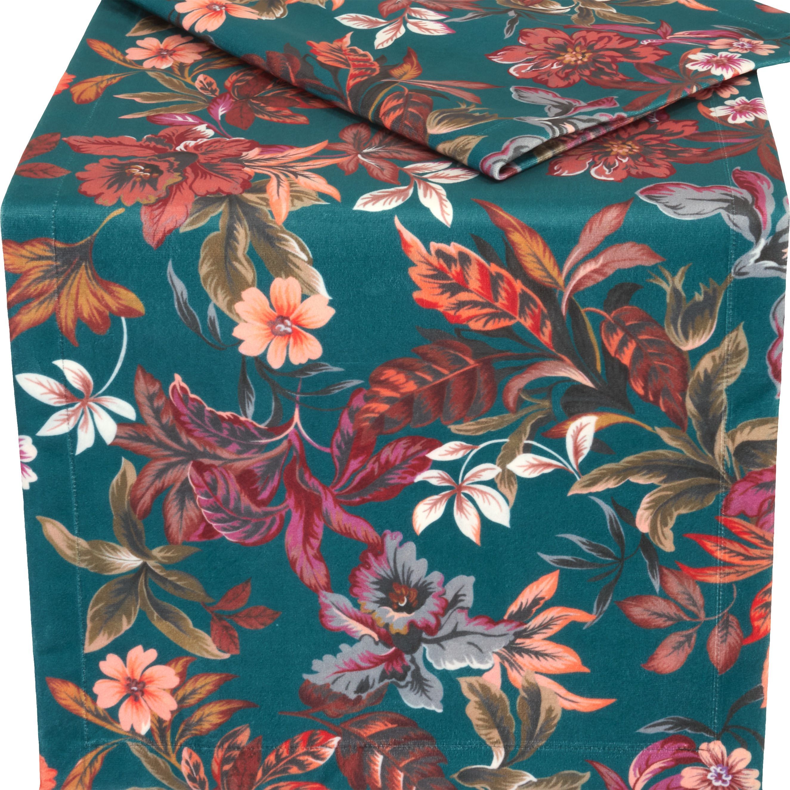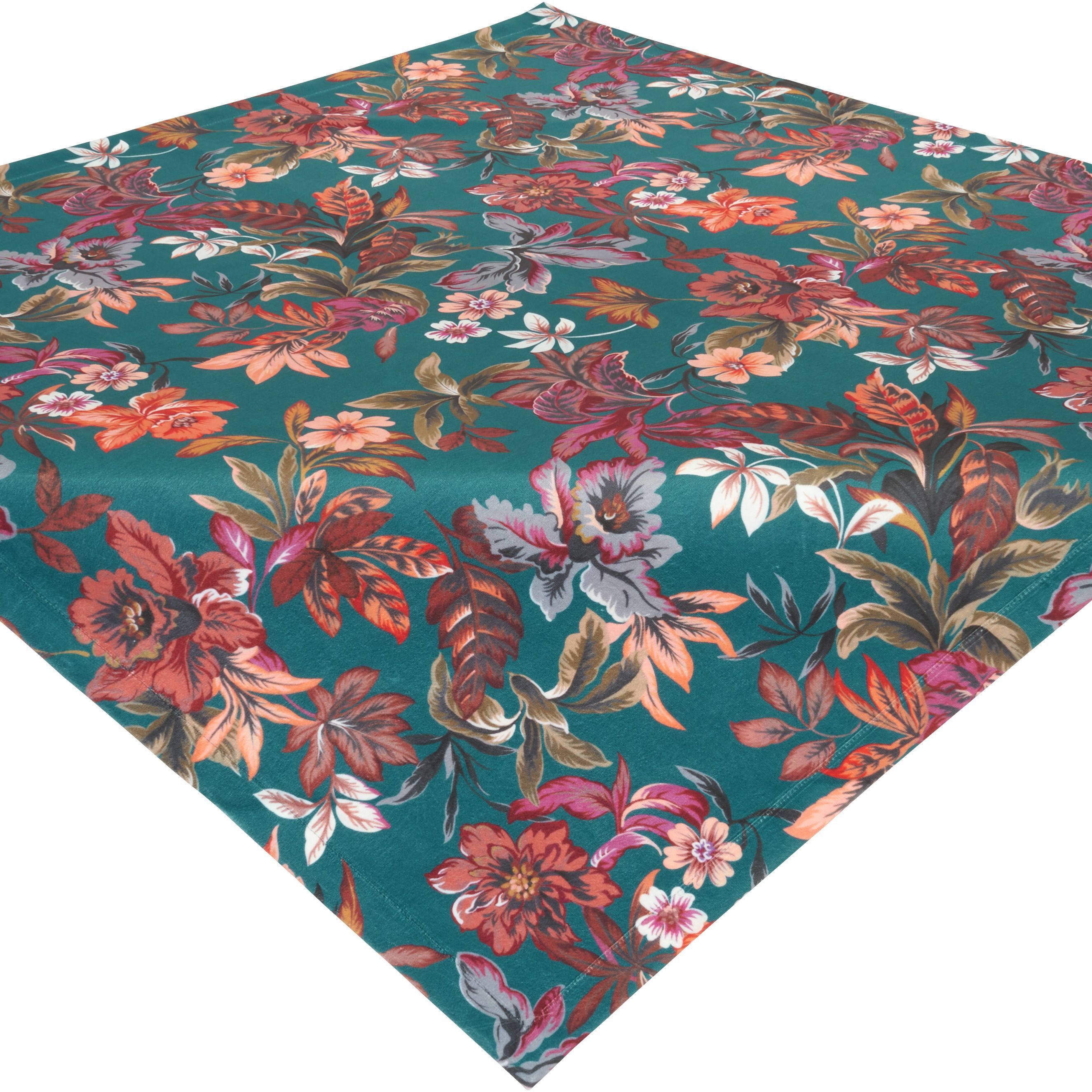 Sandner Orchideen Velours Petrol Heimtextilien Made in Germany