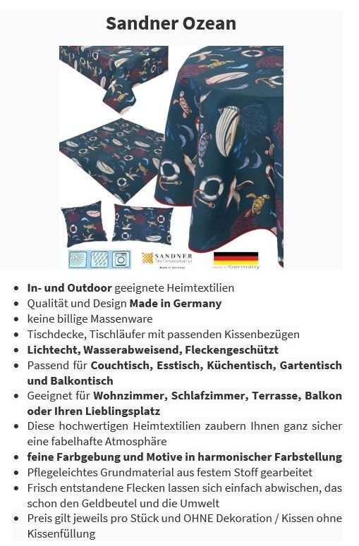 Sandner Outdoor Ozean Maritime Heimtextilien Stoff Beschichtet Made in Germany