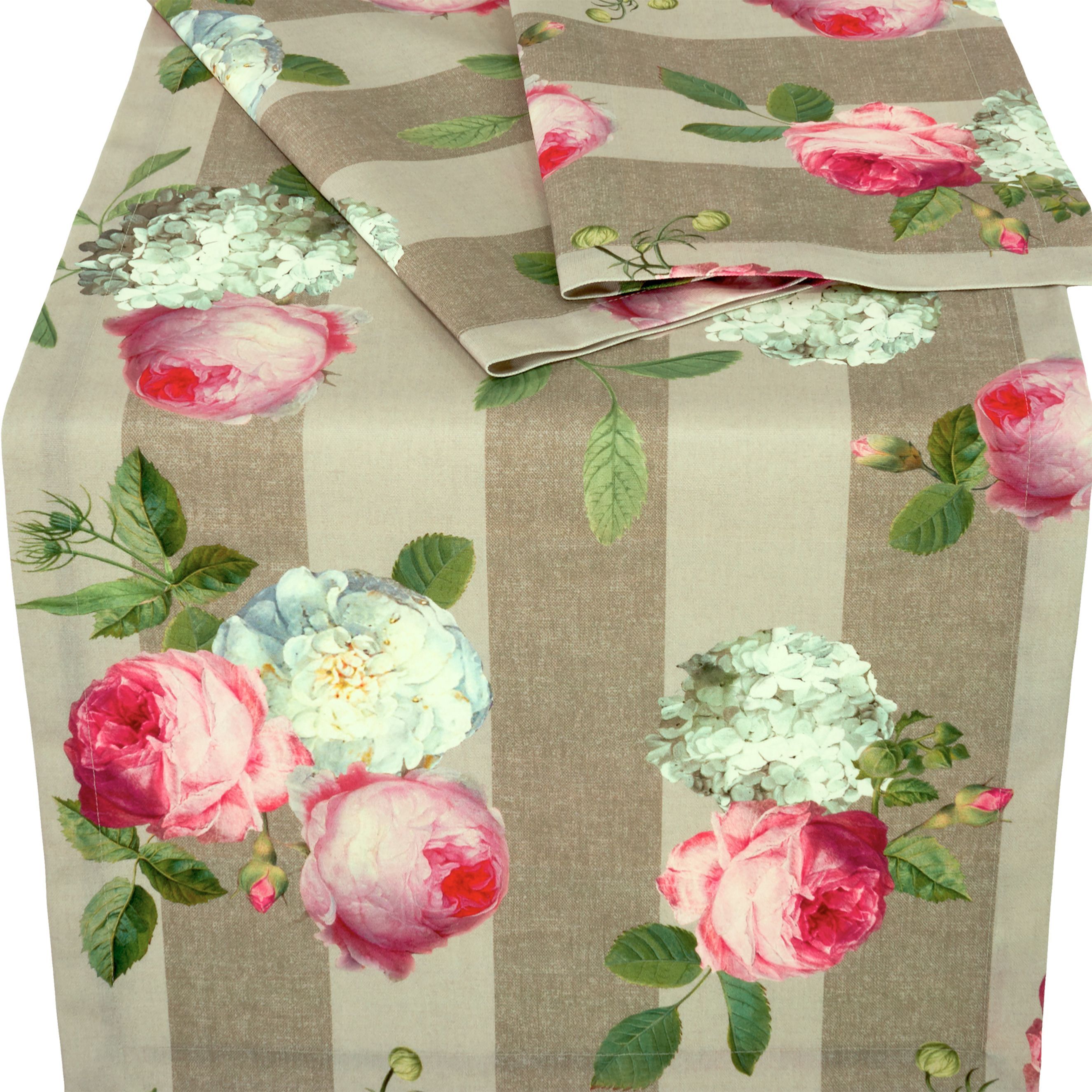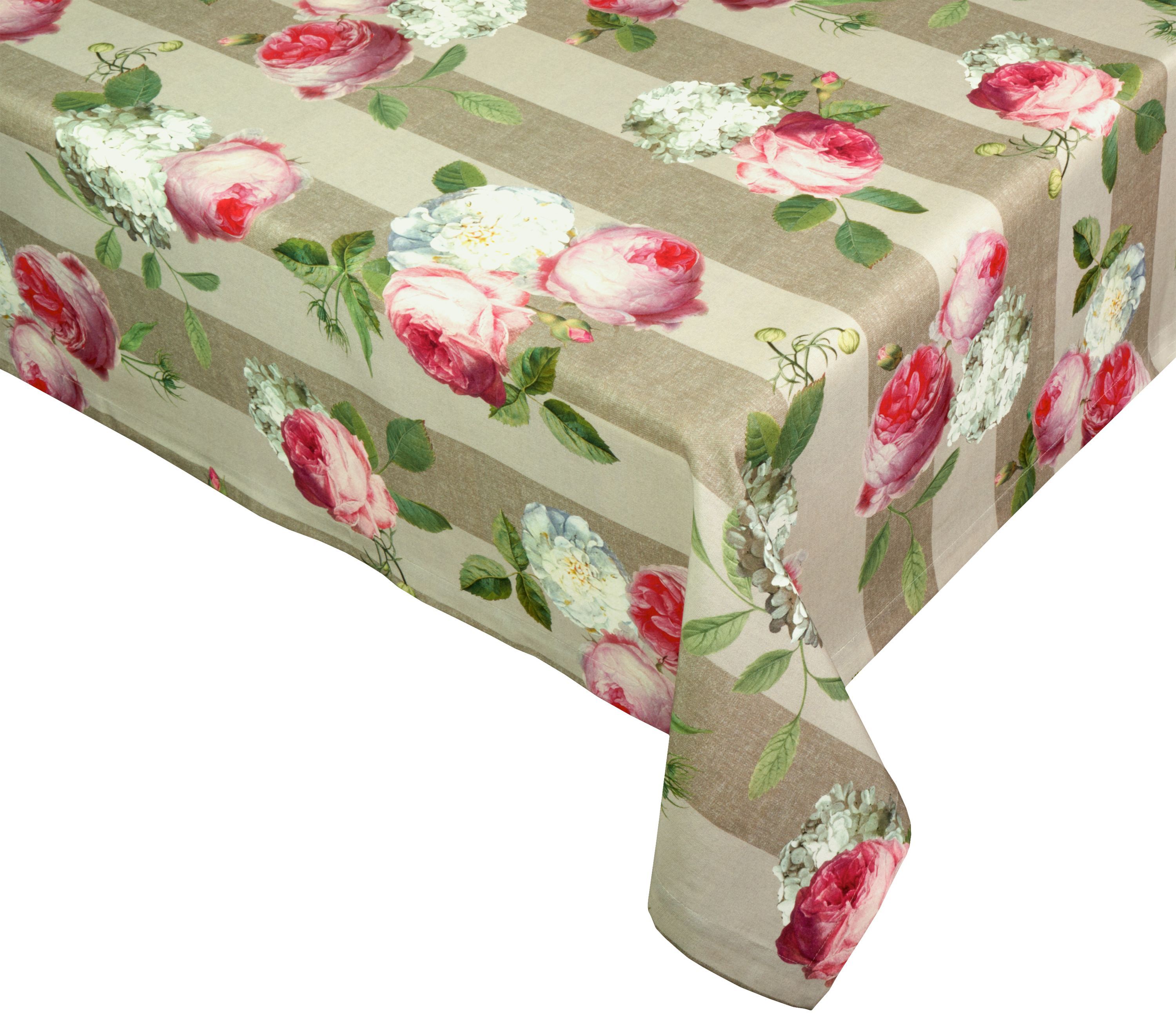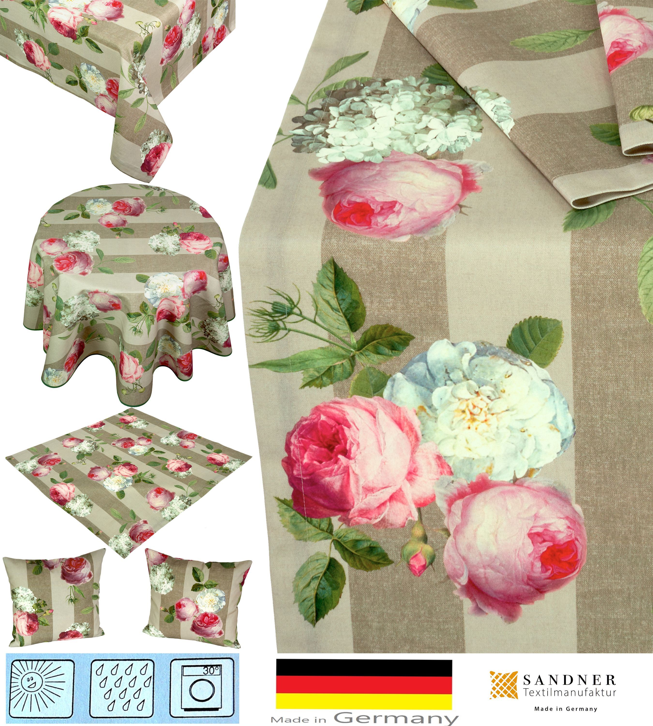 Sandner Edelrosen Outdoor * Beschichtete Tischdecken, Tischläufer u. Kissenbezüge als elegante Dekoration für den In- und Outdoor Bereich mit effektiver Fleckschutzausrüstung. Gartentischdecke mit passenden Kissen Made in Germany. 100% Polyacryl.