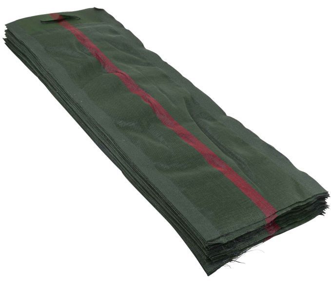 Sandsack zum Befüllen. Technische Daten: Grundfarbe grün 7 Jahre UV-Stabilität reißfest frostsicher ohne Befüllung mit Schnellverschluß 190 g/m² Breite: 1000 mm Länge: 270 mm