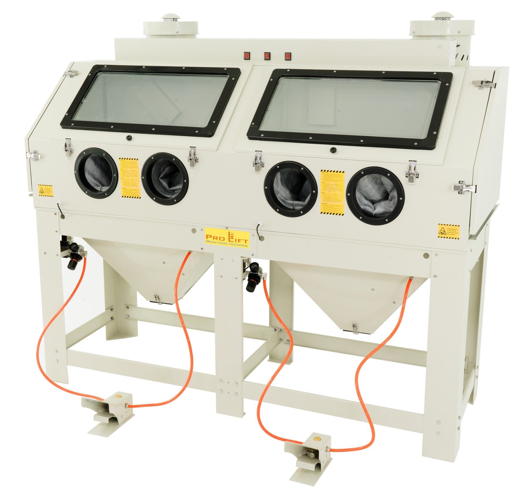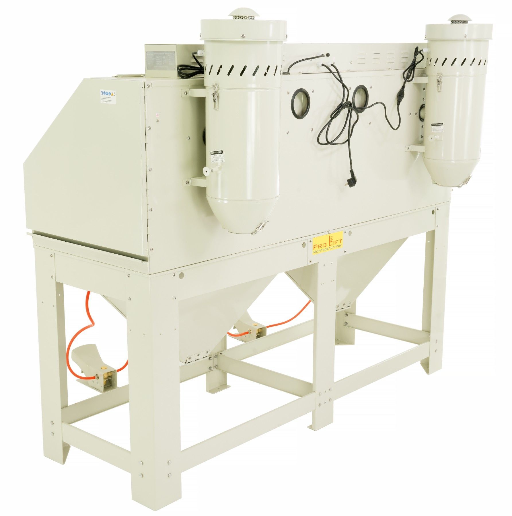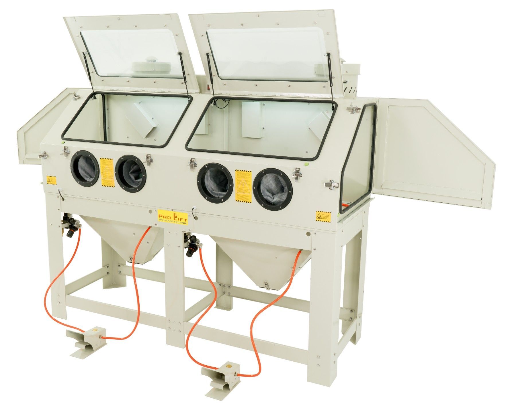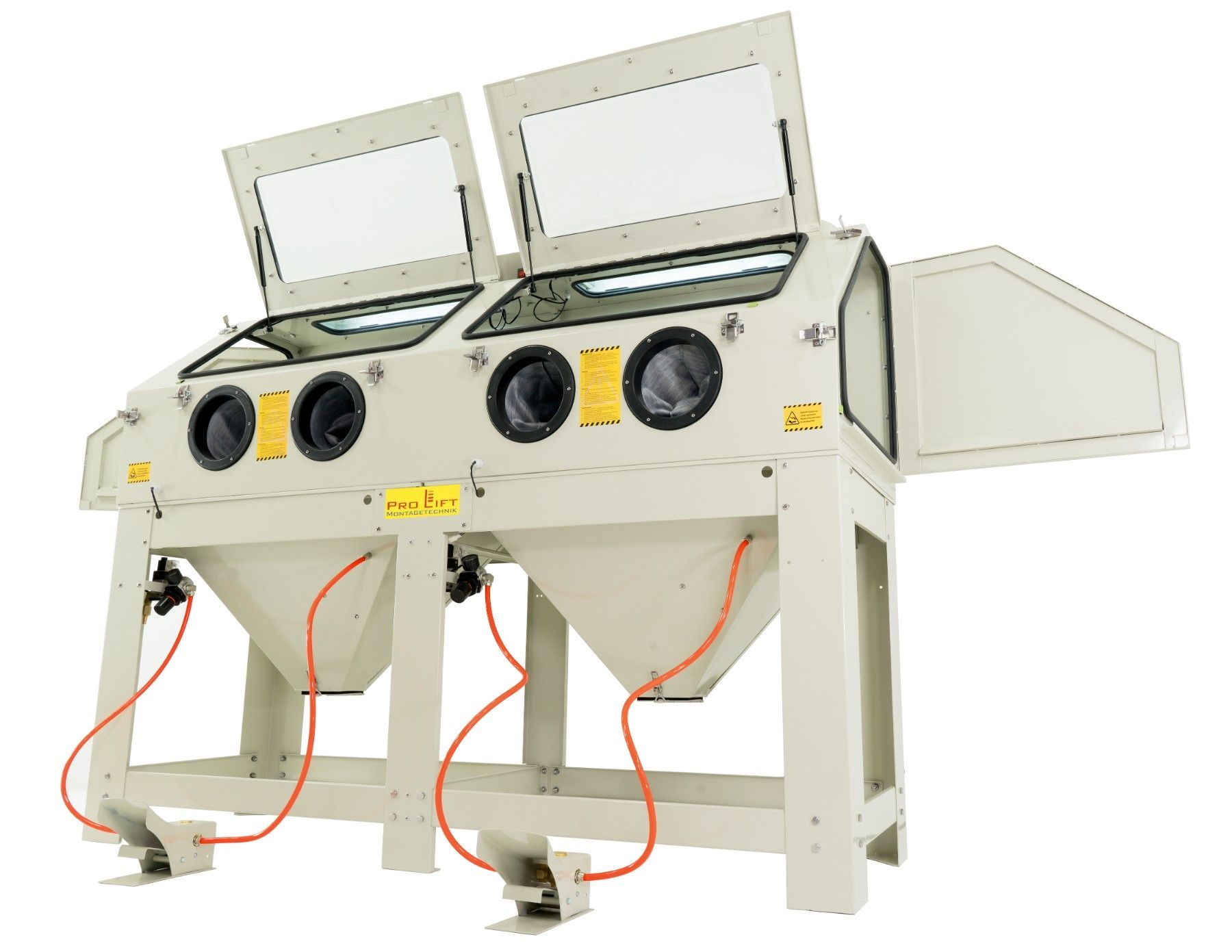 880 Liter Sandstrahlkabine SB88AJ mit 2 eingebauten Absaugungen, 2 Seitentüren + 2 großen Frontklappen SB88AJ-02822 Diese Doppel-Sandstrahlkabine ist ideal zum Sandstrahlen von langen, großen Werkstücken. Dank Doppeltüren und 2 Strahlpistolen können zwei Personen gleichzeitig arbeiten. An der Rückse
