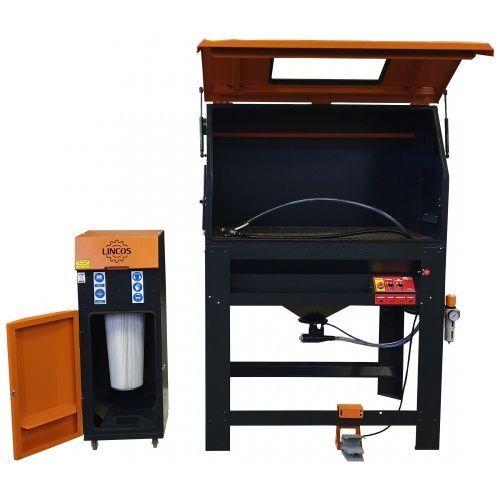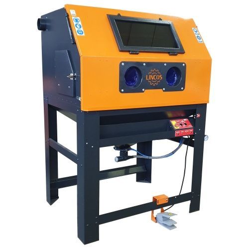 Diese Druckstrahlkabine ist für den echten, professionellen Gebrauch bestimmt. Im Vergleich zum Injektionsstrahlen gewährleistet dieses Sprengverfahren eine wesentlich höhere Arbeitsgeschwindigkeit. Dies liegt daran, dass die Druckluft nur zum Versprühen des Strahlmittels (und nicht auch zum Absaugen) verwendet wird. Die Luft wird effizient genutzt. Für eine gute Arbeitsansicht ist die Druckstrahlkabine mit Beleuchtung und einem leistungsstarken Staubabsaugsystem ausgestattet. Auf diese Wei