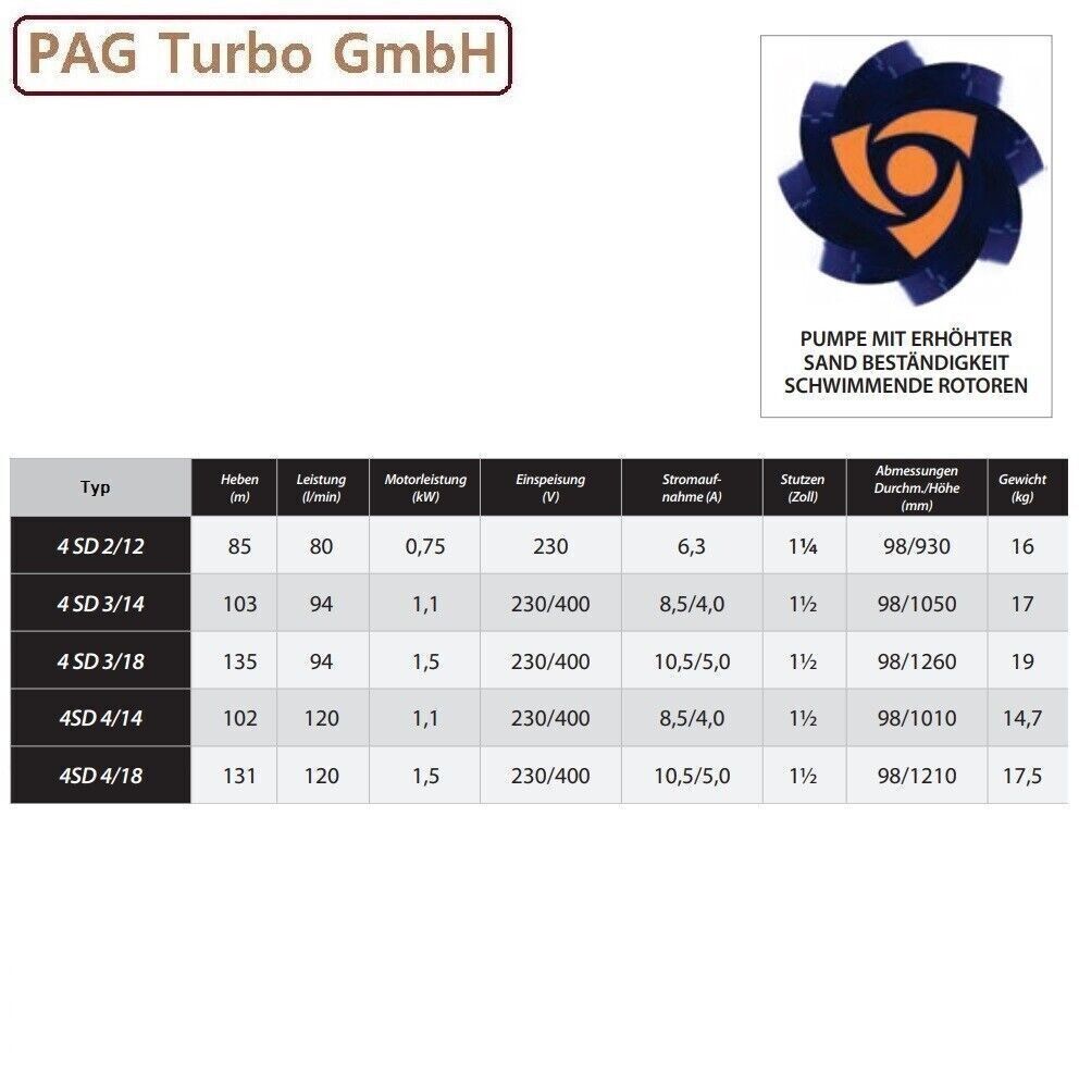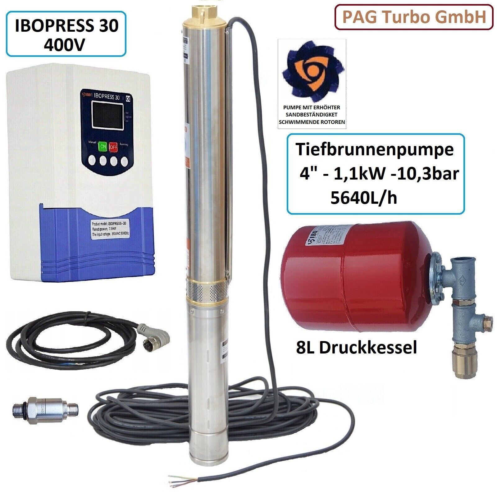 Sandverträgliche 4" Tiefbrunnenpumpe 400V 5640L/ h 10,3bar + Steuerung Ibopress30