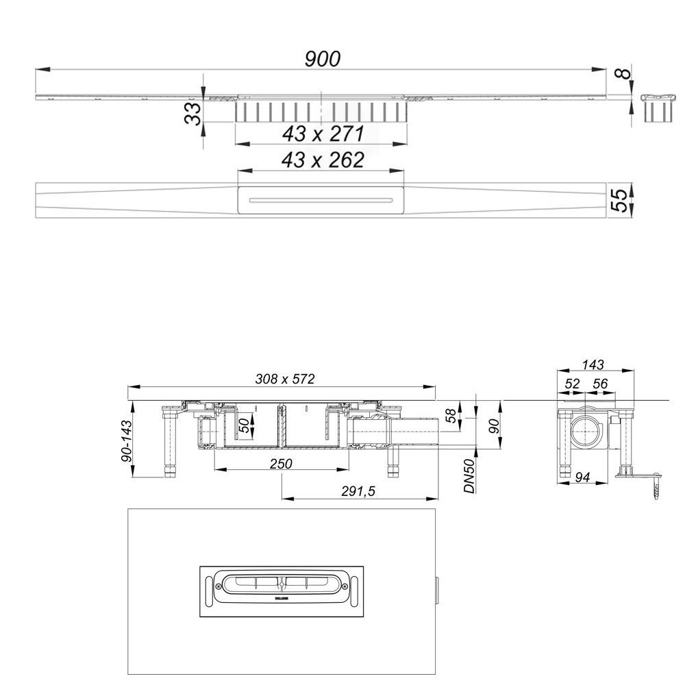 Sanibel 4001 A17 Design Duschrinne Edelstahlabdeckung Bodenablauf Abdichtung
