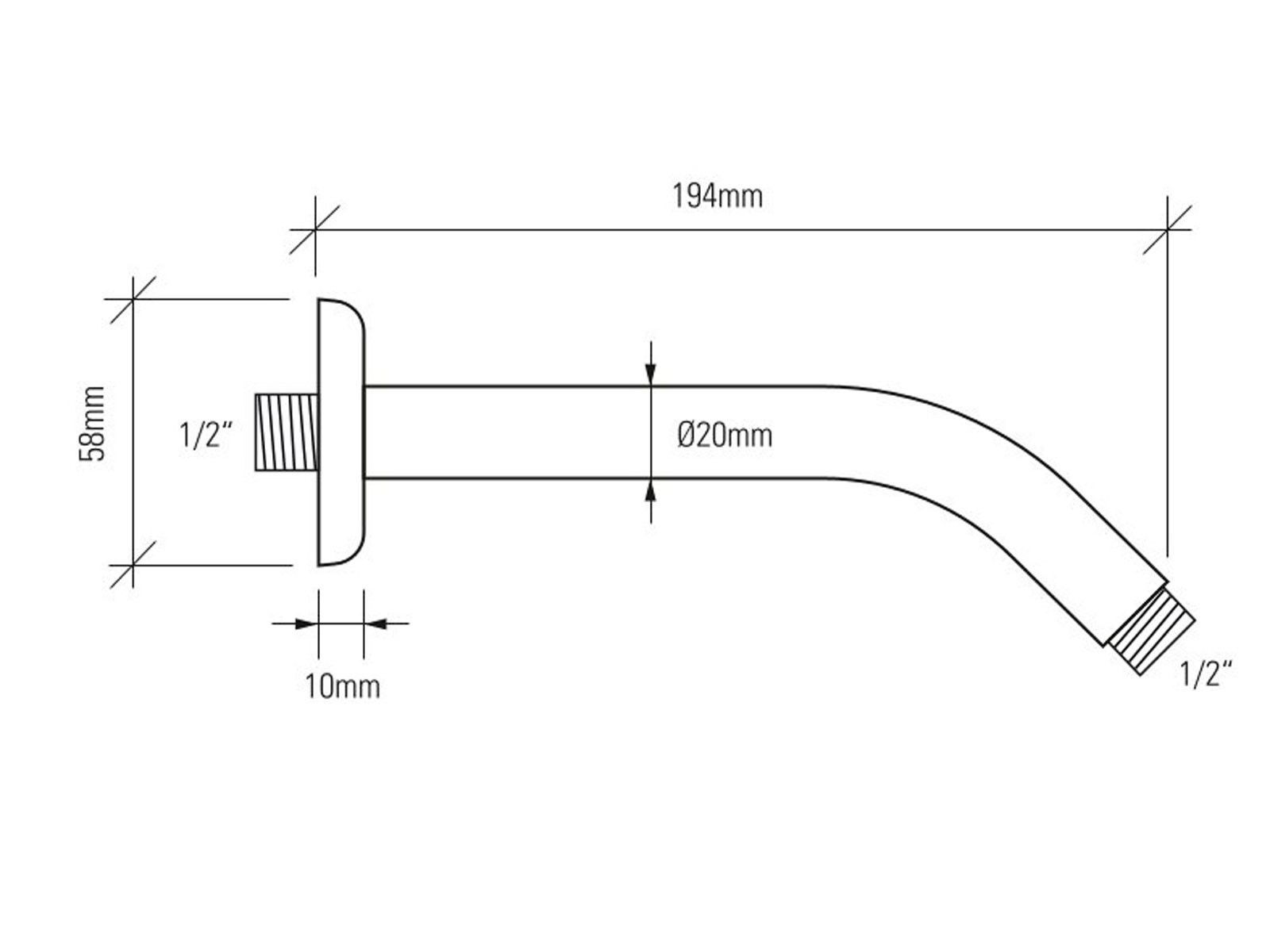 Sanibel Brausearm 194 mm Kopfbrause 1/2" Wandhalterung Regenbrause Wandarm