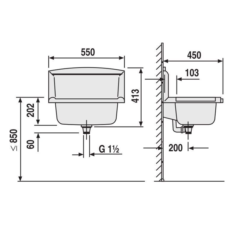 SANIT multiset Funktionsbecken 60005B60099, Farbe: granit, mit Spritzschutzrückwand