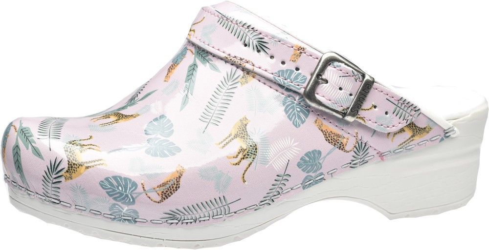 Sanita Damen Offener Clog Animal Leopard Rose