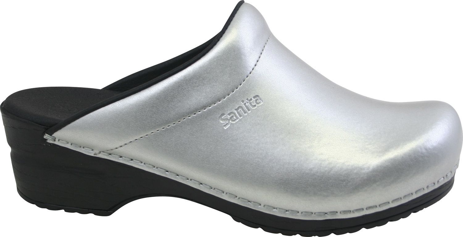 Sanita Damen Offener Clog Original-Sonja Pu Open Silver