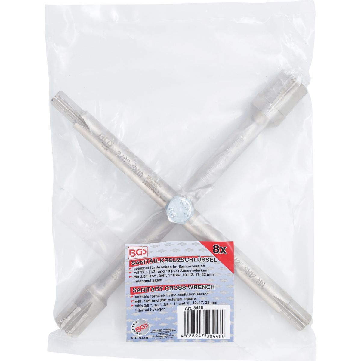 BGS Sanitär-Kreuzschlüssel, Vierkant Schlüssel Klempner Werkzeug 10 Funktionen