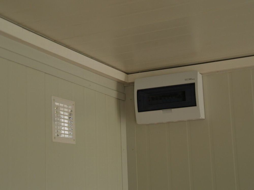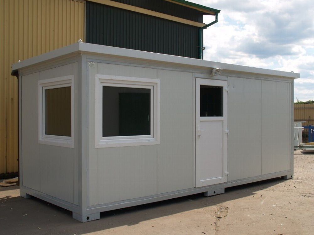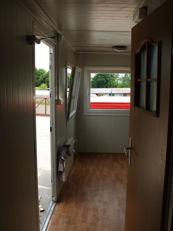 Sanitärcontainer mit 6 Toiletten und 4 x Waschbecken. Sofort einsatzbereit. 6,05 x 2,44 Meter, 2,70 Meter hoch, Innenhöhe 2,40 Meter. Die Konstruktion besteht aus Stahl 100x50x4 mm, wodurch Stabilität gewährleitet ist. Die Wände sind aus Sandwichplatten mit einer Dicke von 80 mm gefertigt. Fußboden
