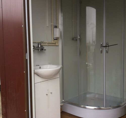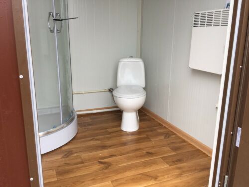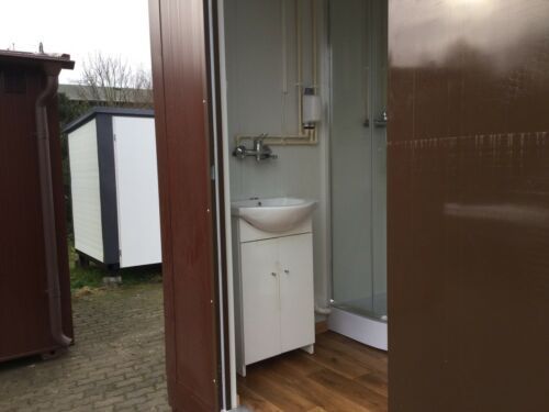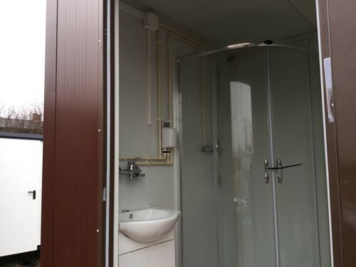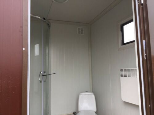 einfach anschließen- sofort einsatzbereit Euro Sanitärcontainer Euro 2x2 Meter. mit WC und Dusche Euro - Fenster Euro - elektrischer Durchlauferhitzer 5,5KW 230V, optional 11KW 400V möglich - Wärmegedämmtes Sandwichprofil 7,50cm für geringen Energieverlust Euro - verzinkte Hörmann Stahlblech Außentü